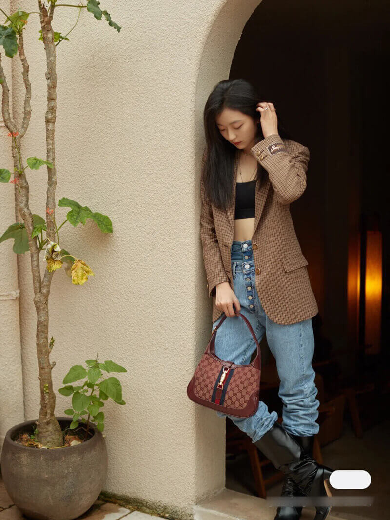 Gucci Jackie 1961 Small Shoulder Bag 636706 in Burgundy GG Canvas