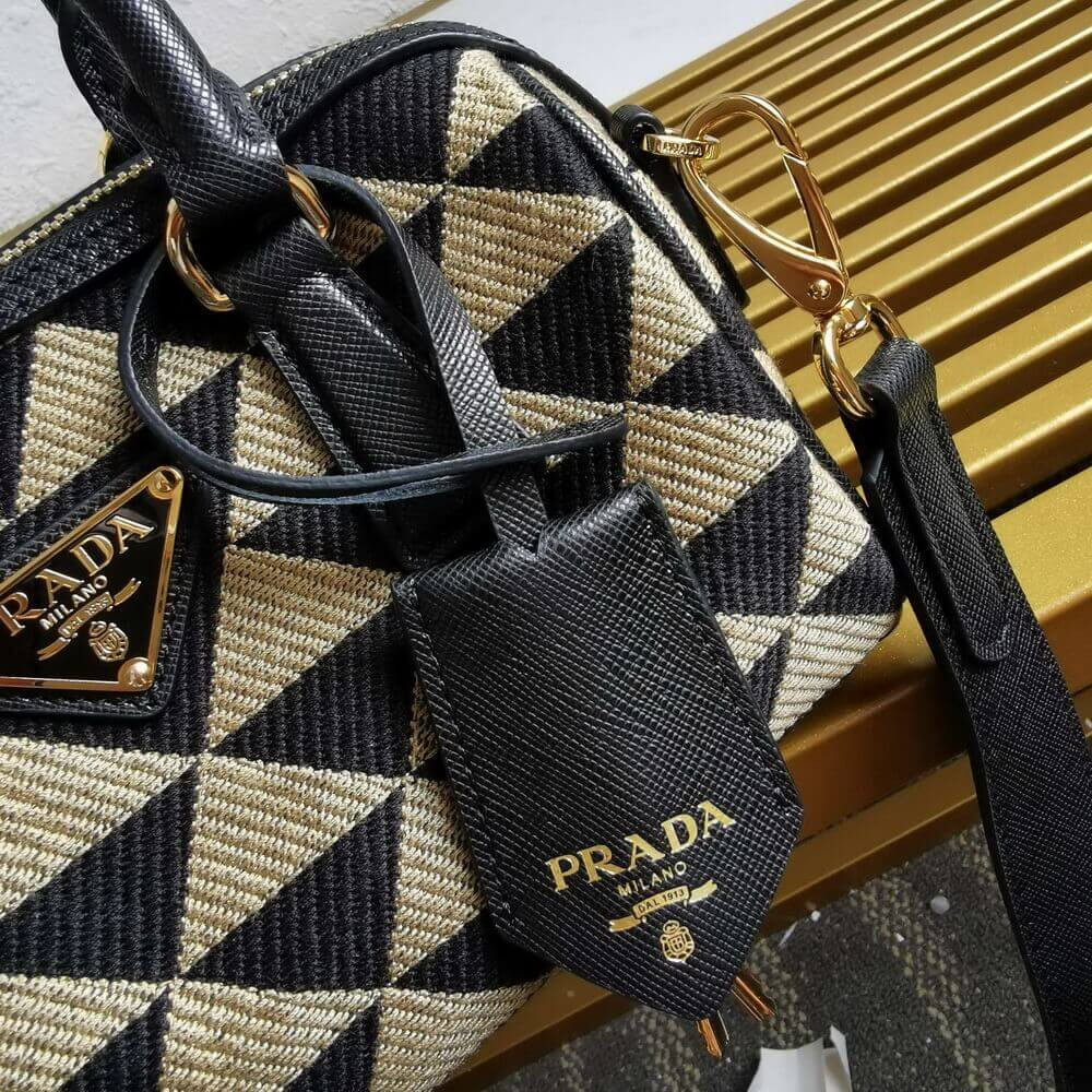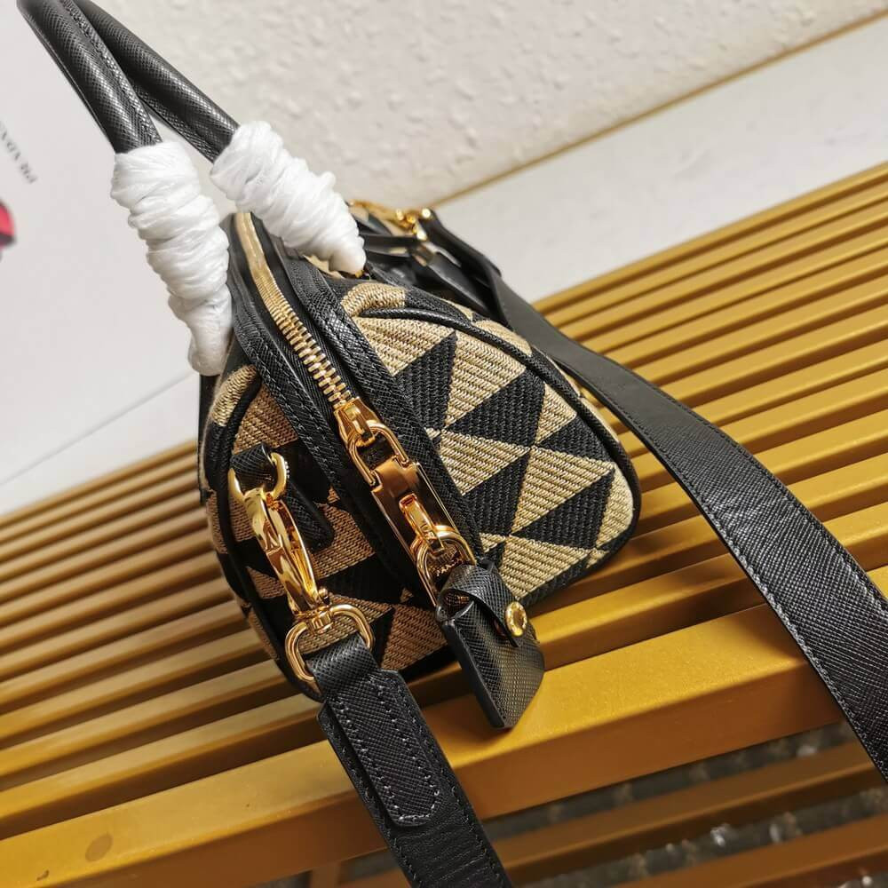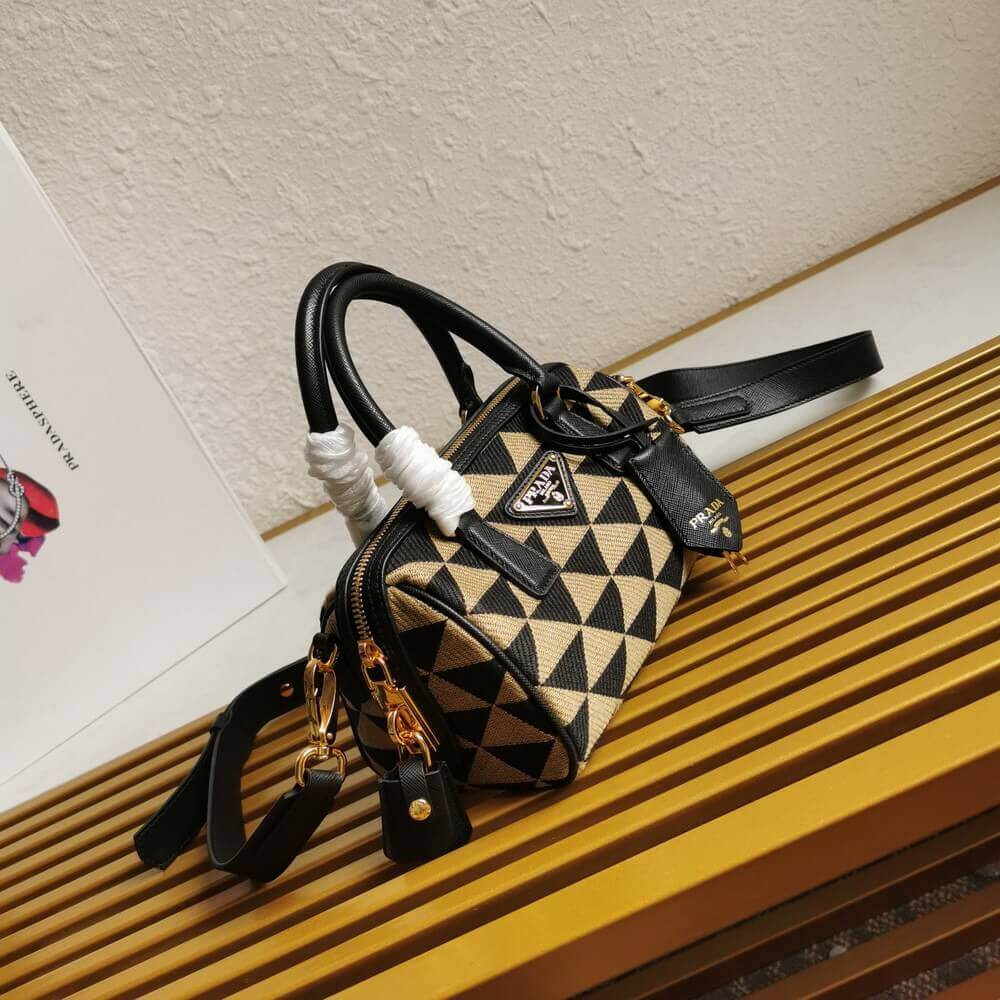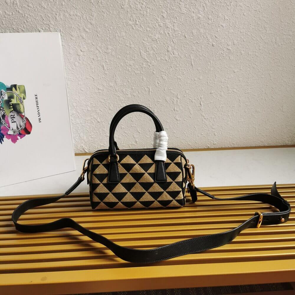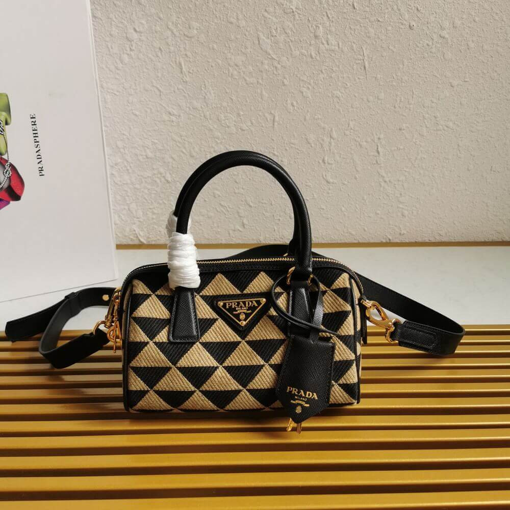 Prada Symbole Embroidered Fabric Top-Handle Bag 1BB846 Black/Beige