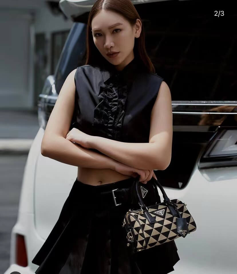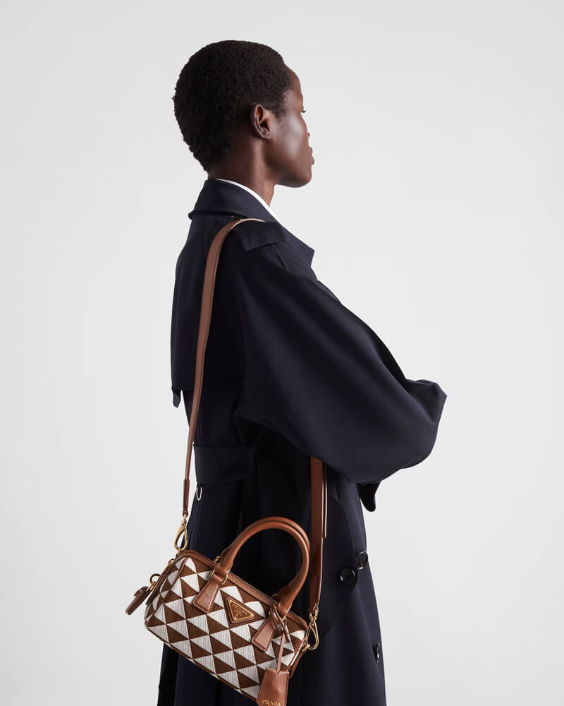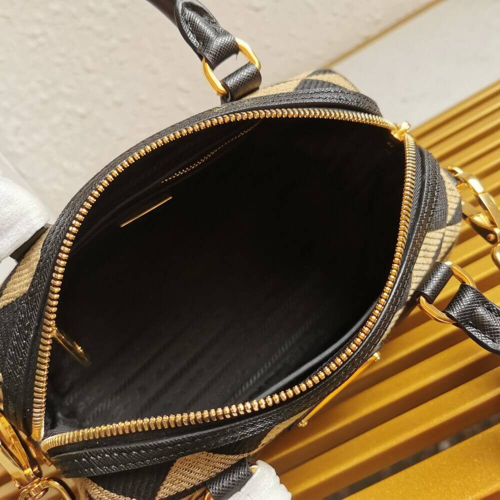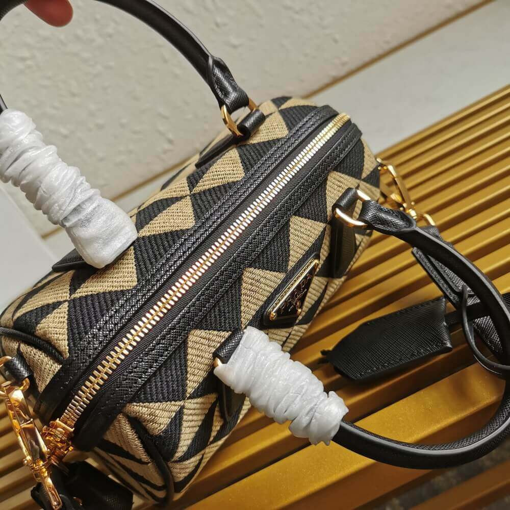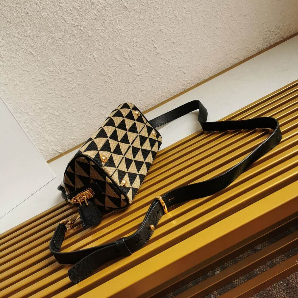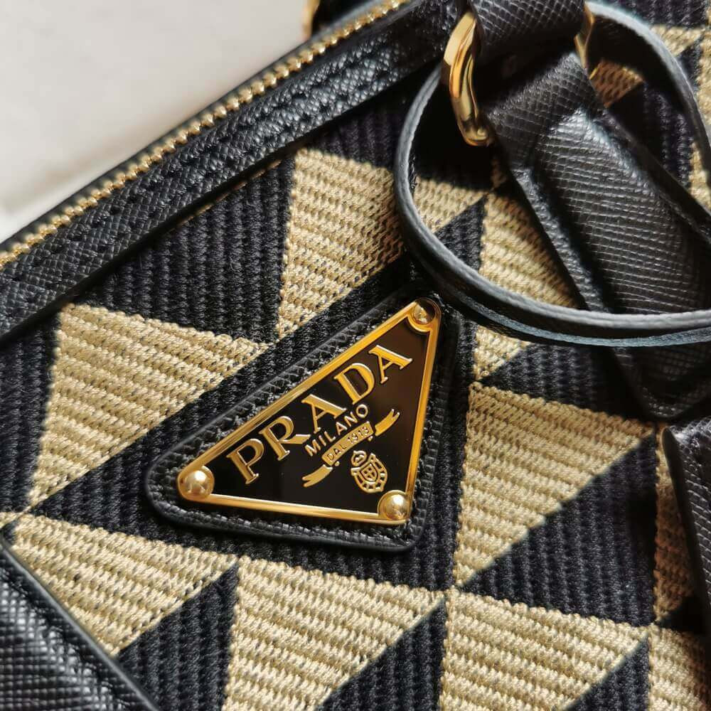 Prada Symbole Embroidered Fabric Top-Handle Bag 1BB846 Black/Beige