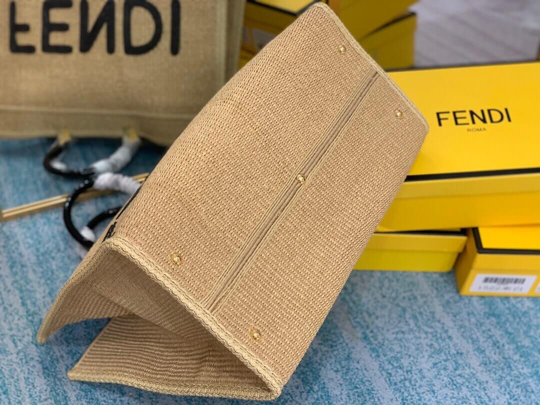Fendi Sunshine Large Shopper Woven Raffia Tote 8BH372 Beige
