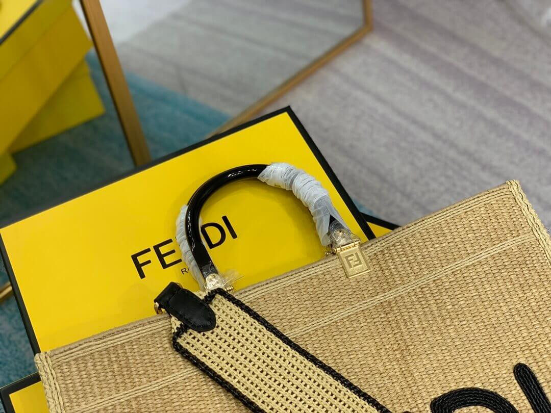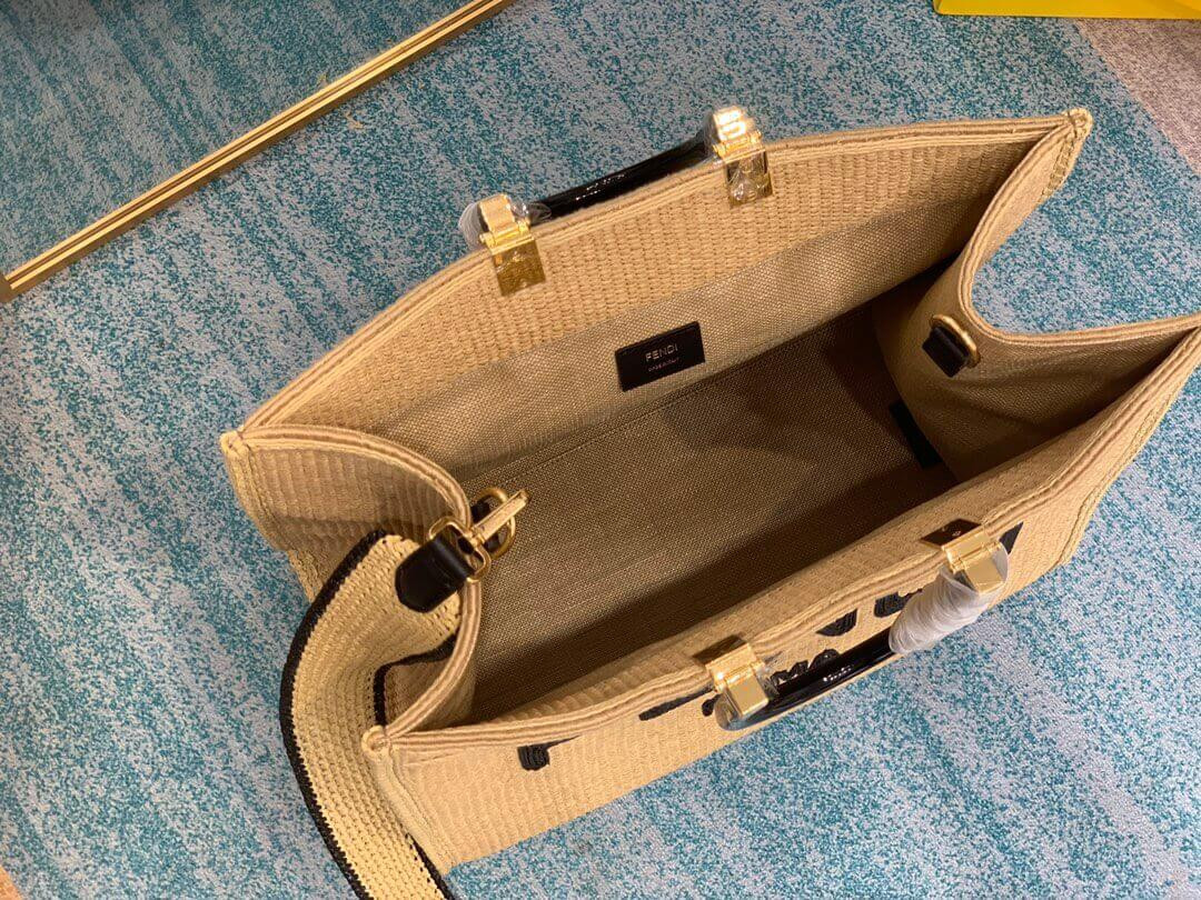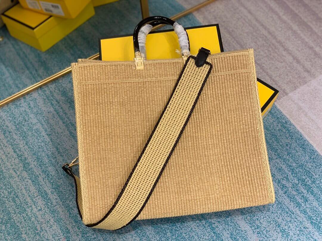 Fendi Sunshine Medium Shopper Woven Raffia Tote 8BH386 Beige