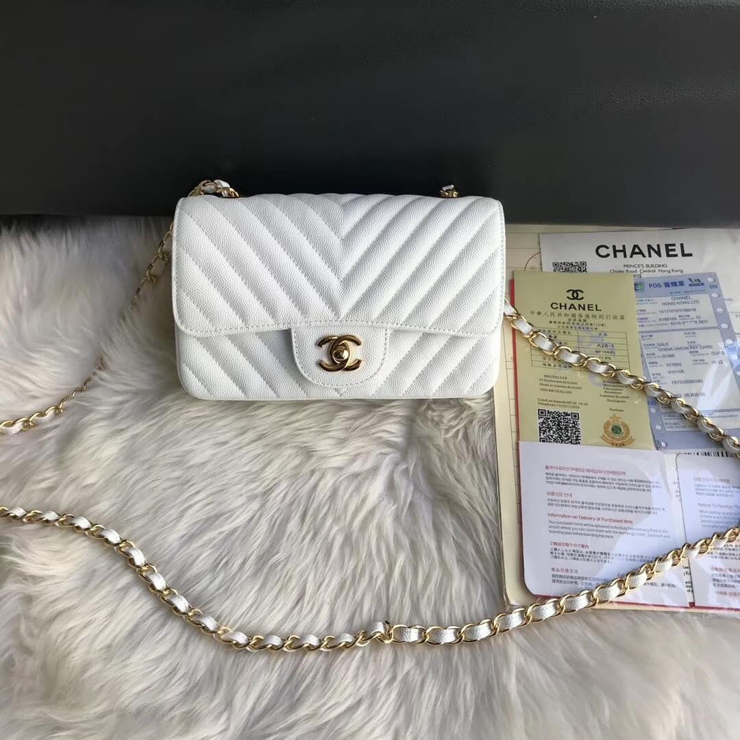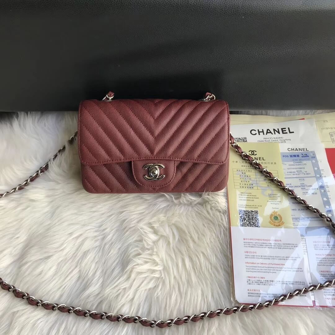 Chanel Chevron Caviar Leathe 20cm Classic Flap Bag 1116