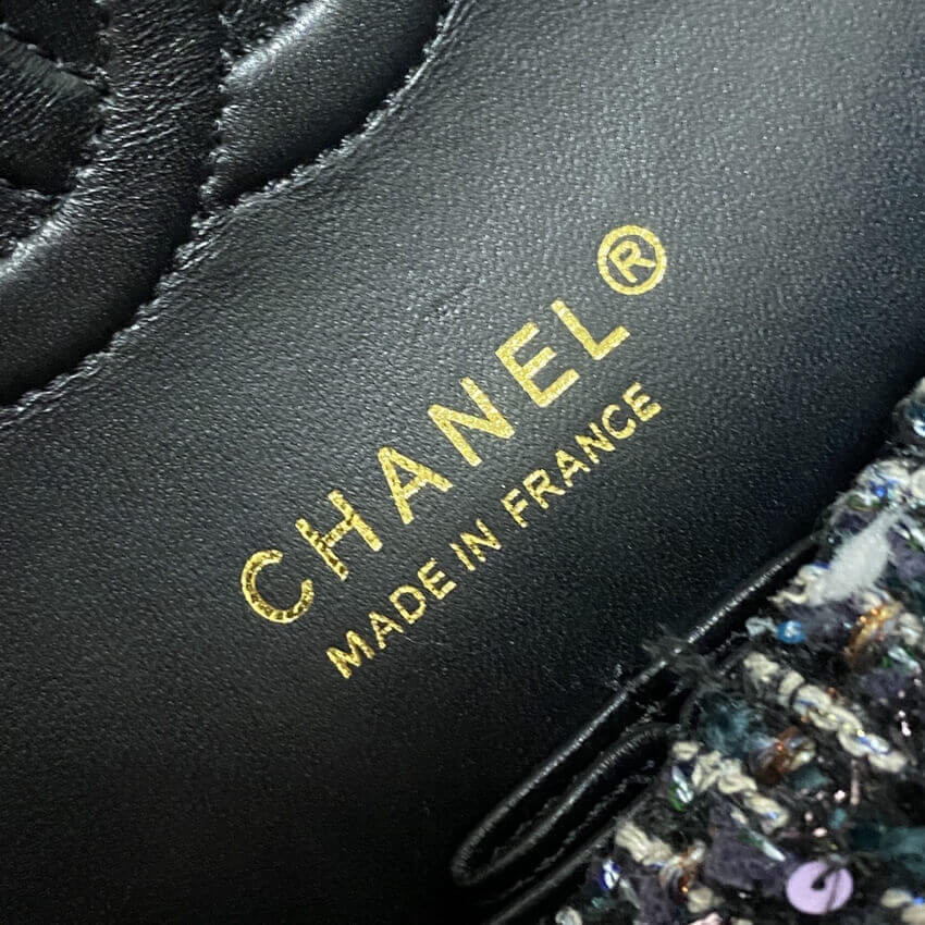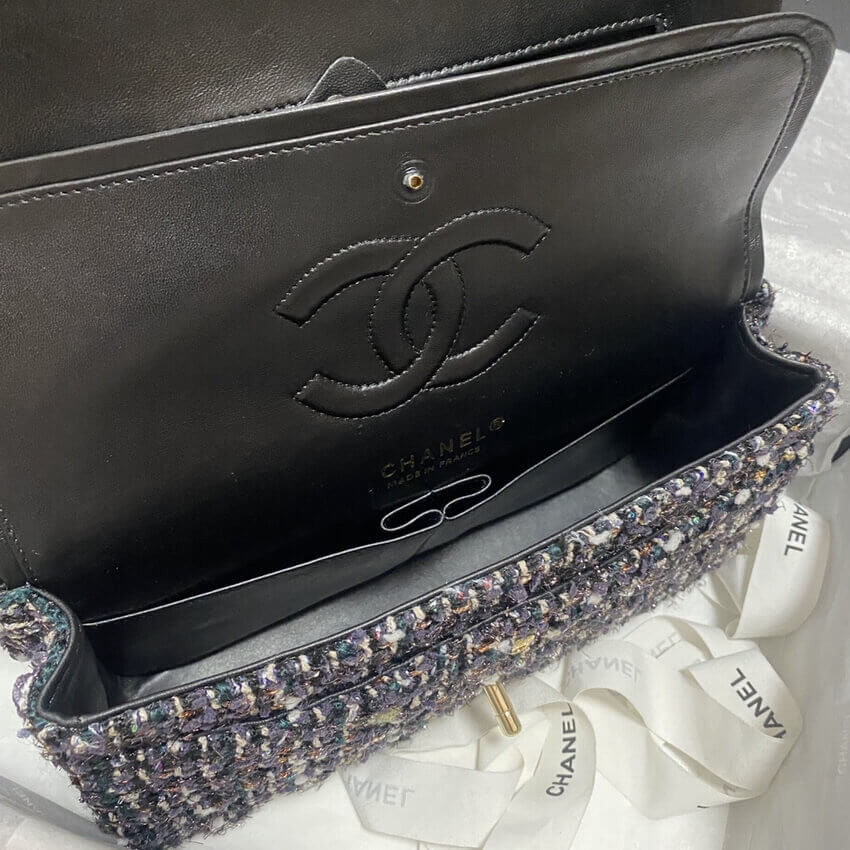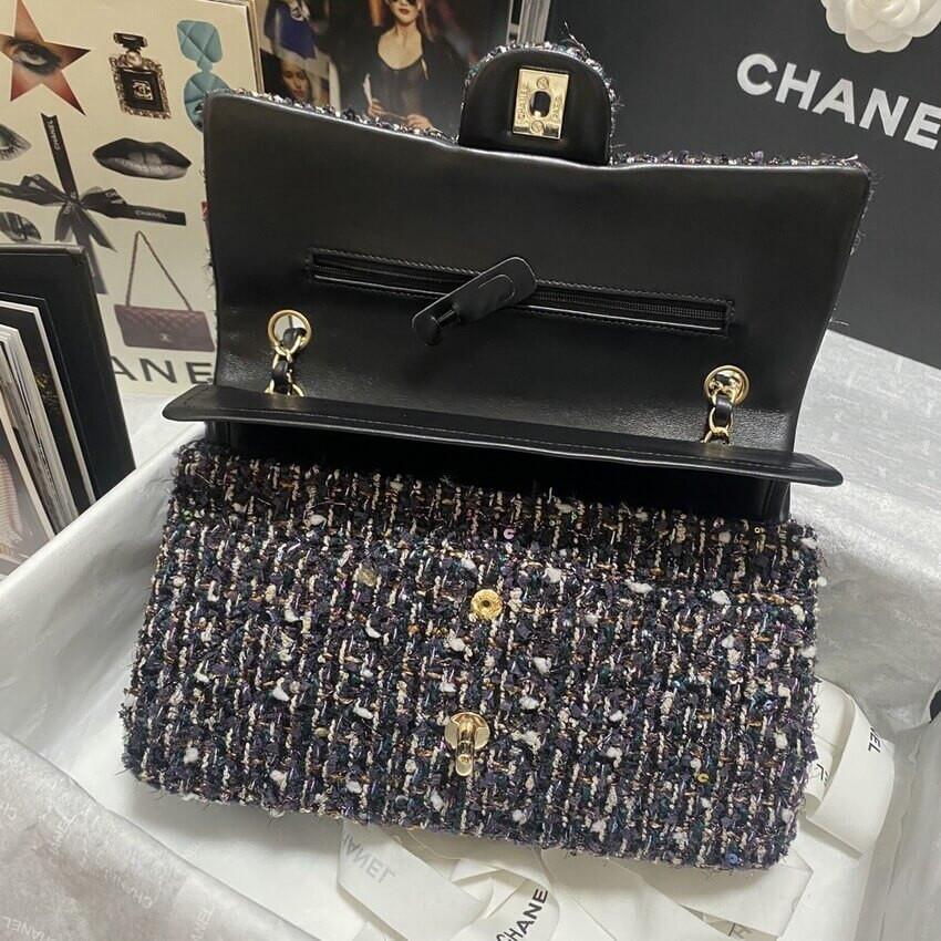 Chanel Classic Flap Bag in Navy Blue & Multicolor Glittered Tweed 1112