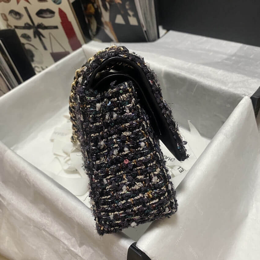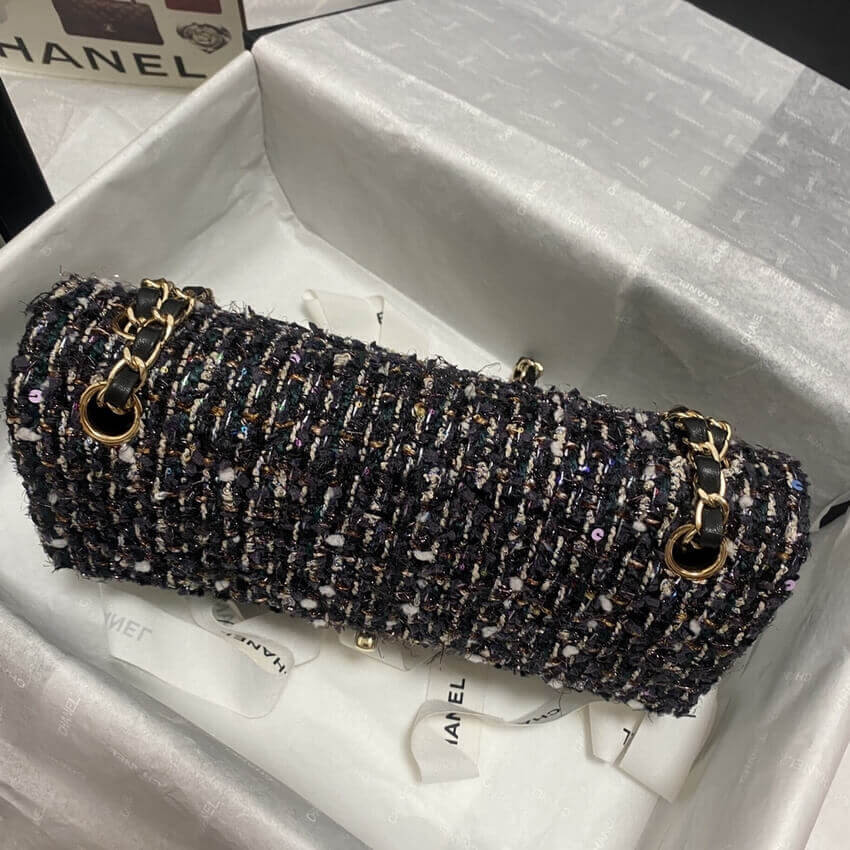 Chanel Classic Flap Bag in Black/Beige Glittered Tweed 1112