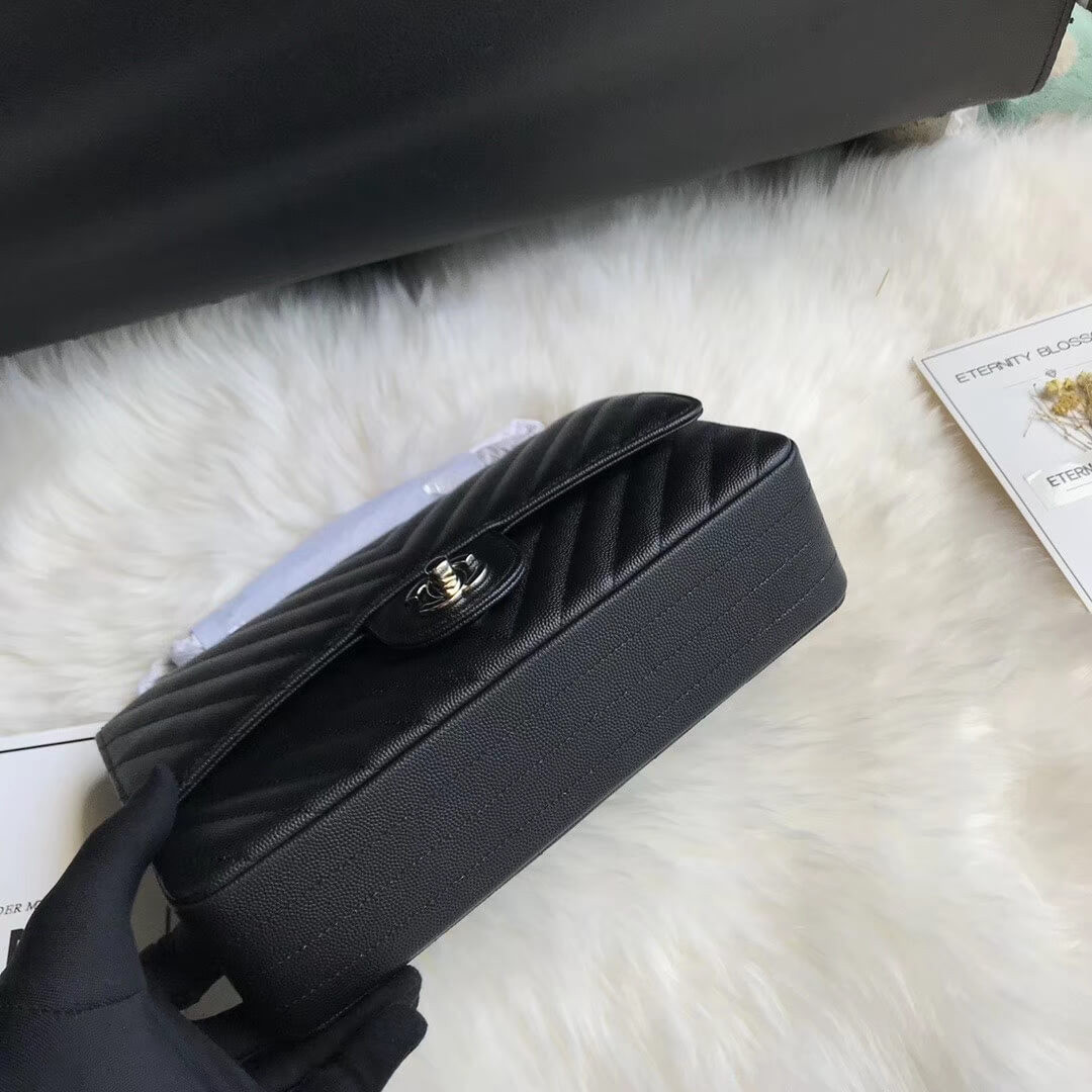 Chanel Chevron Caviar Calfskin Classic Flap Bag A01112 Black
