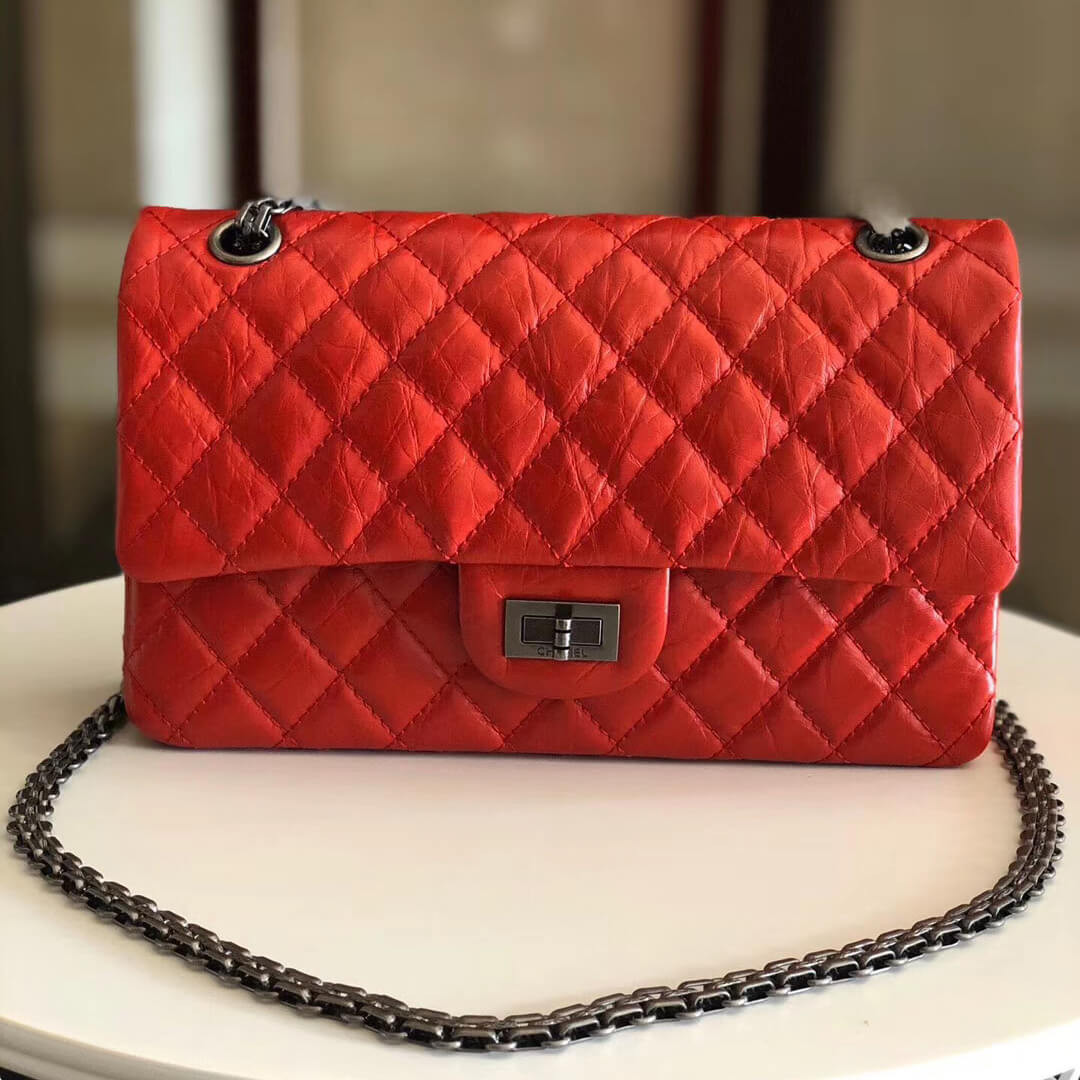 Chanel 1112 Red Medium Size 2.55 Lambskin Leather Flap Bag