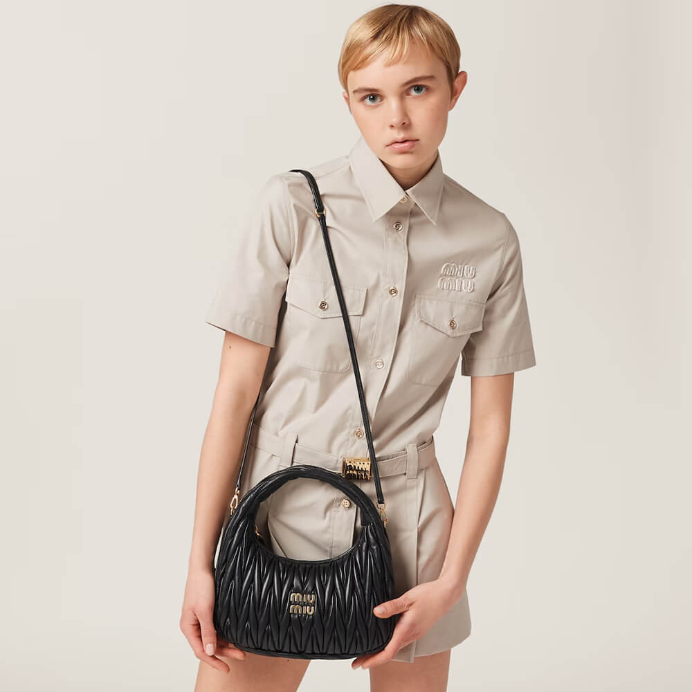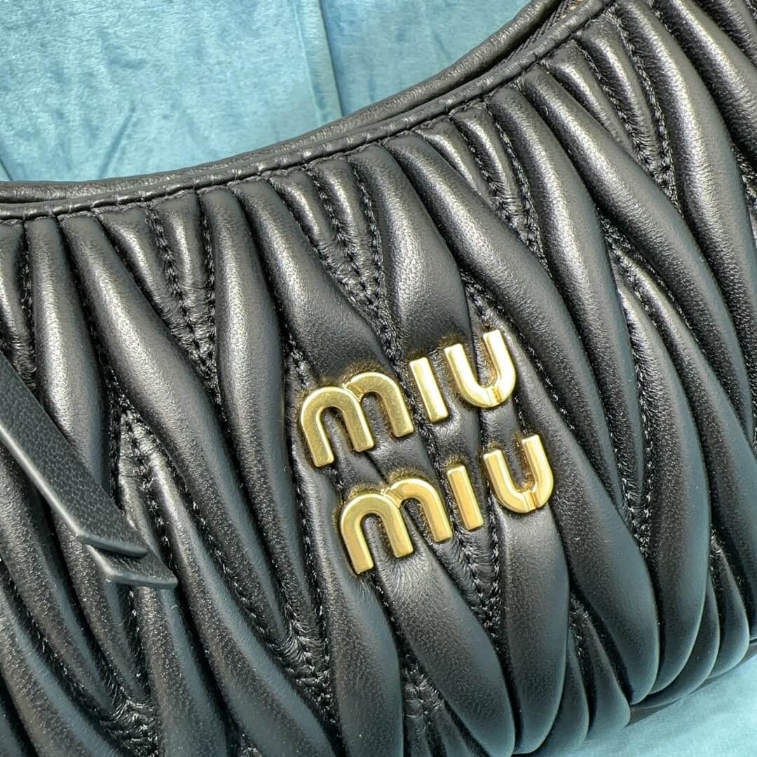 Miu Miu Wander Matelasse Nappa Leather Hobo Bag 5BC153 Black