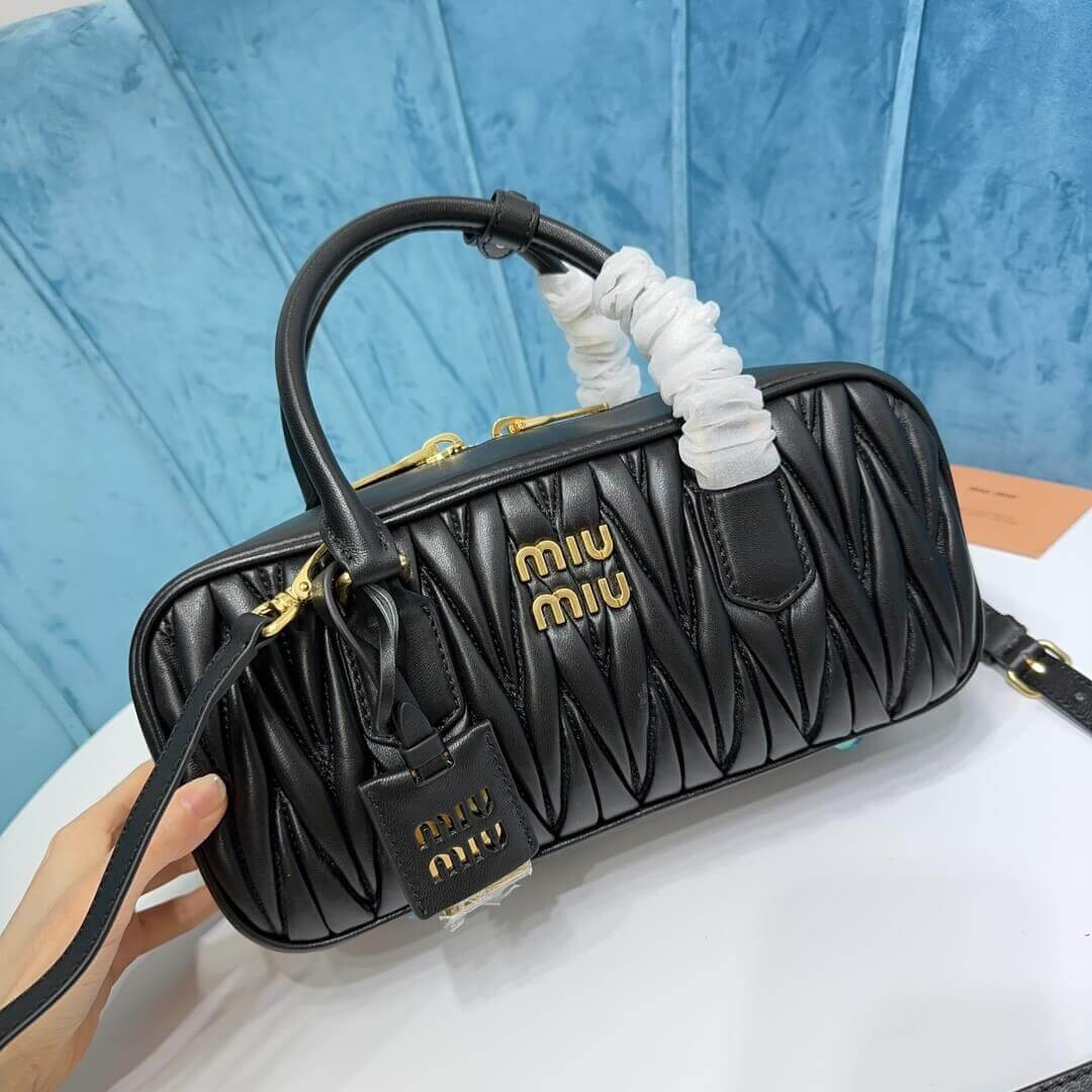 Miu Miu Arcadie Matelasse Nappa Leather Bag 5BB148 Black