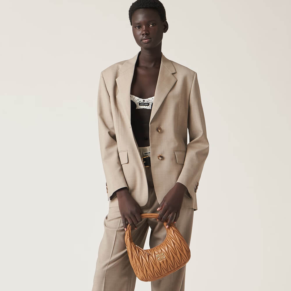 Miu Miu Arcadie Matelasse Nappa Leather Bag 5BB148 Sand Beige
