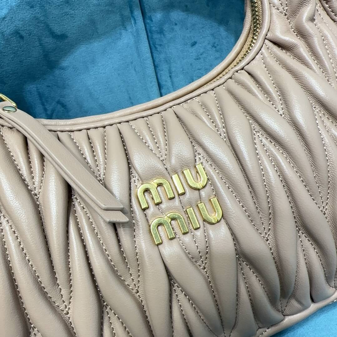 Miu Miu Wander Matelasse Nappa Leather Hobo Bag 5BC153 Sand Beige