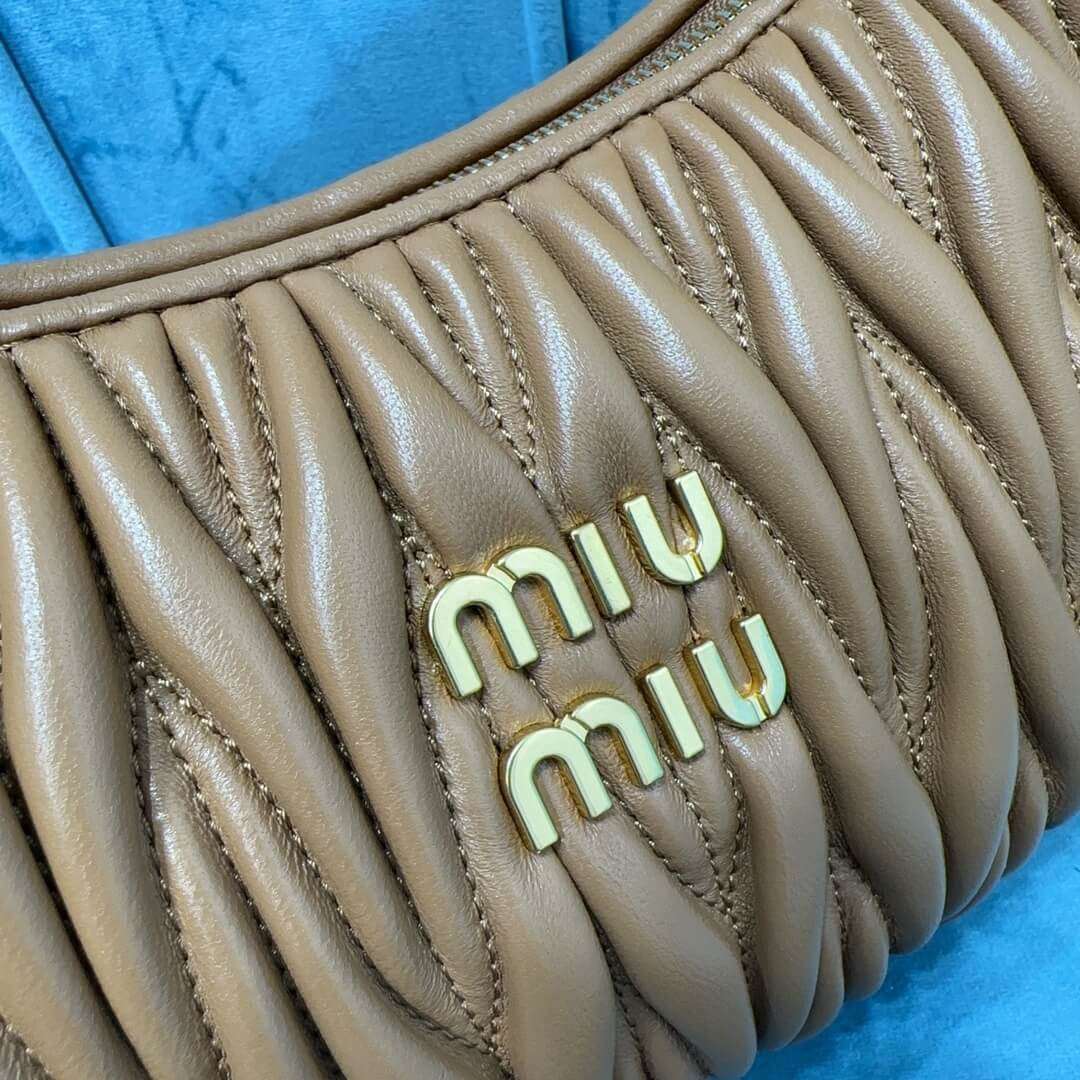 Miu Miu Wander Matelasse Nappa Leather Hobo Bag 5BC153 Caramel