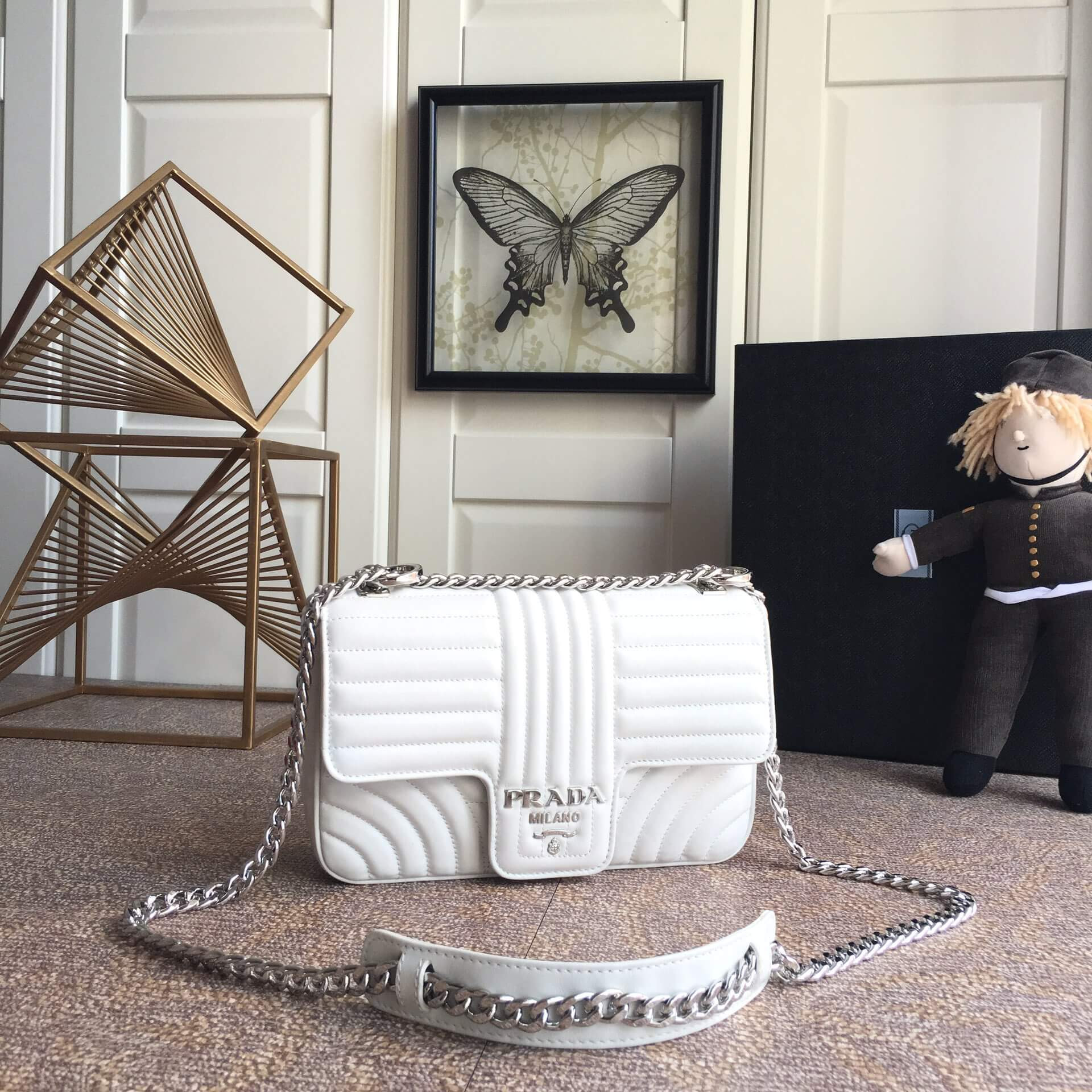 Prada Diagramme Medium Leather Bag 1BD108 Silver Hardware