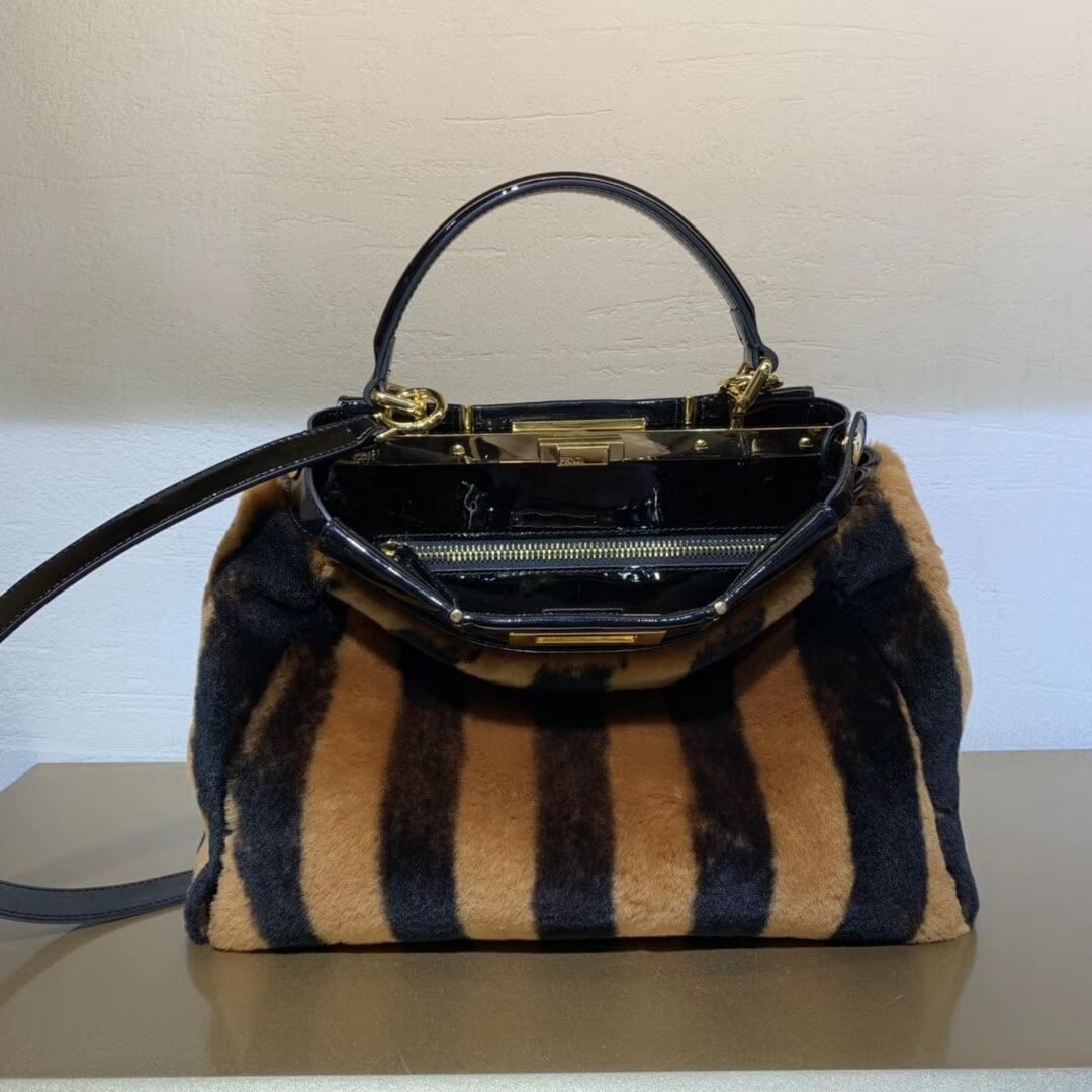 Fendi Peekaboo Iconic Mini Brown Sheepskin Bag 8BN244