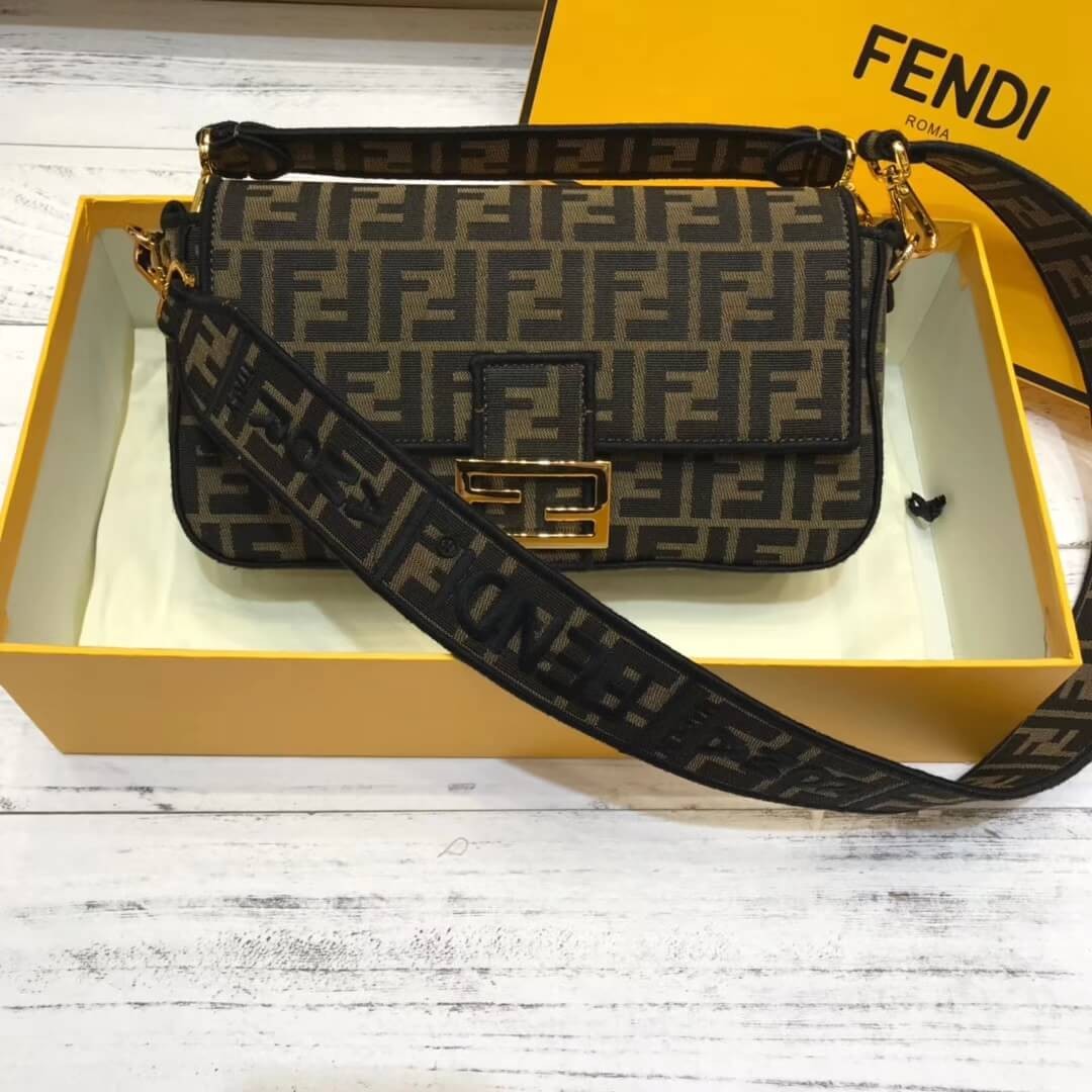 Fendi Brown Fabric Baguette Bag 8BR600