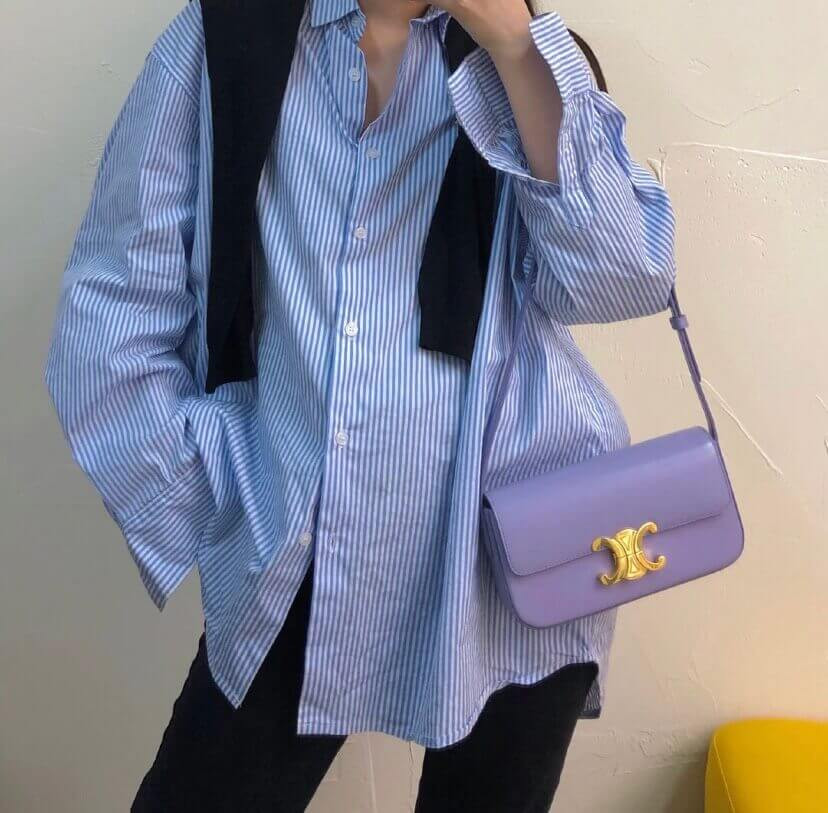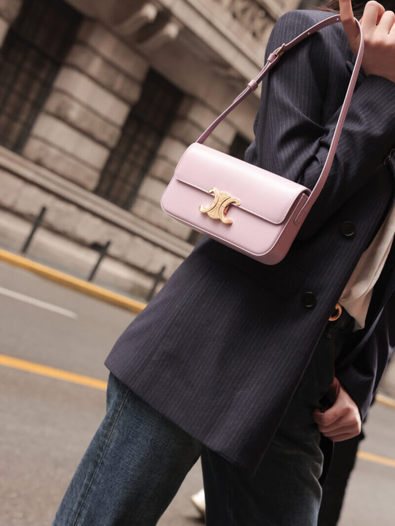 Celine Triomphe Shoulder Bag In Shiny Calfskin 194143 Lavender Grey