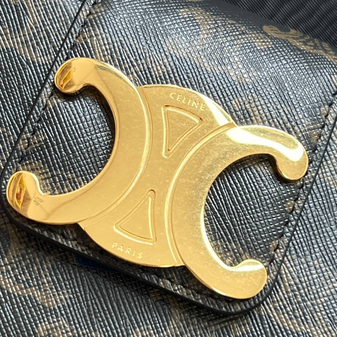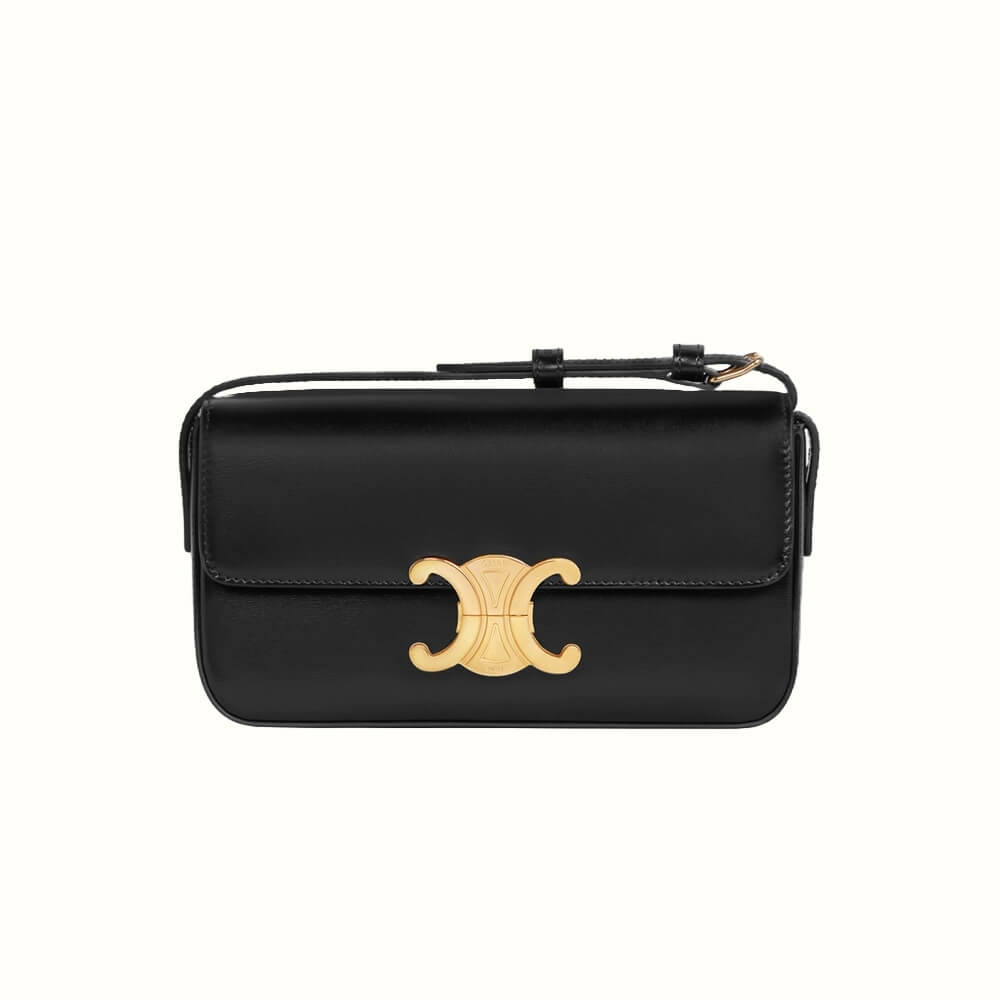 Celine Triomphe Shoulder Bag In Shiny Calfskin 194143 Black