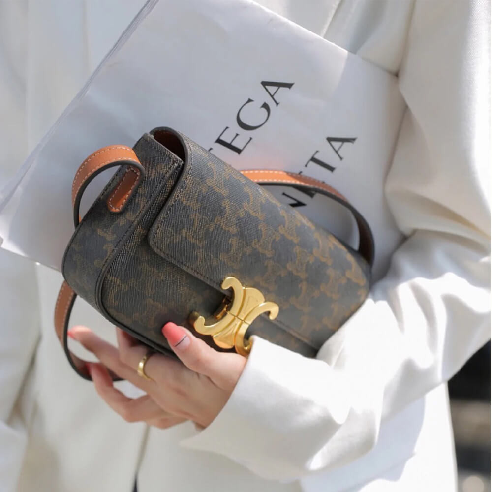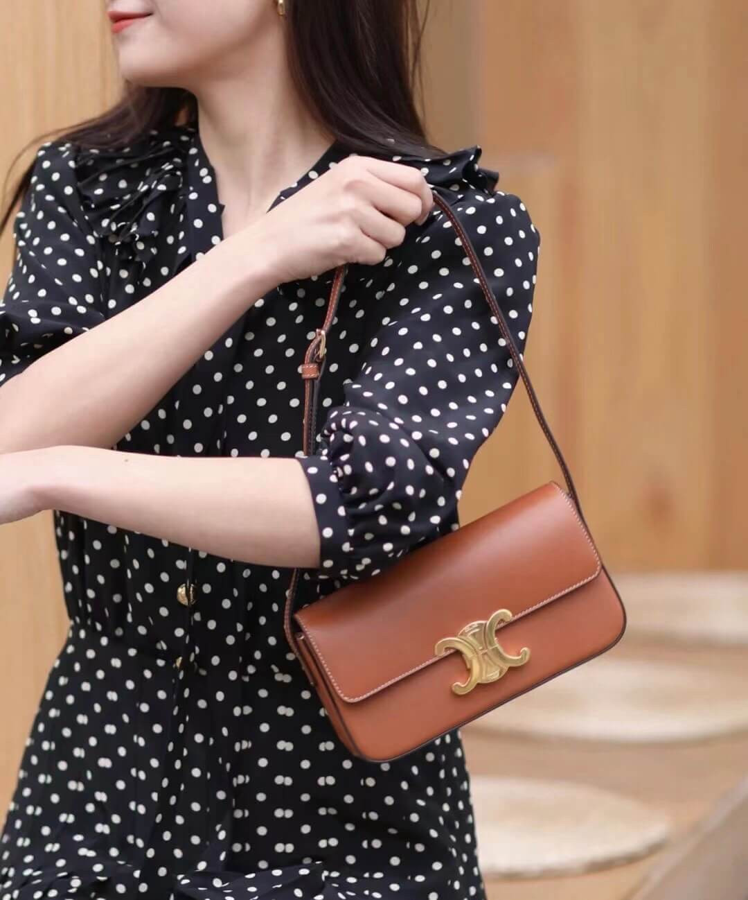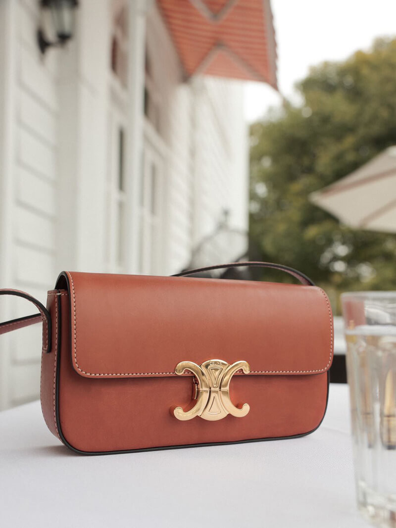 Celine Triomphe Shoulder Bag In Natural Calfskin 194143 Tan