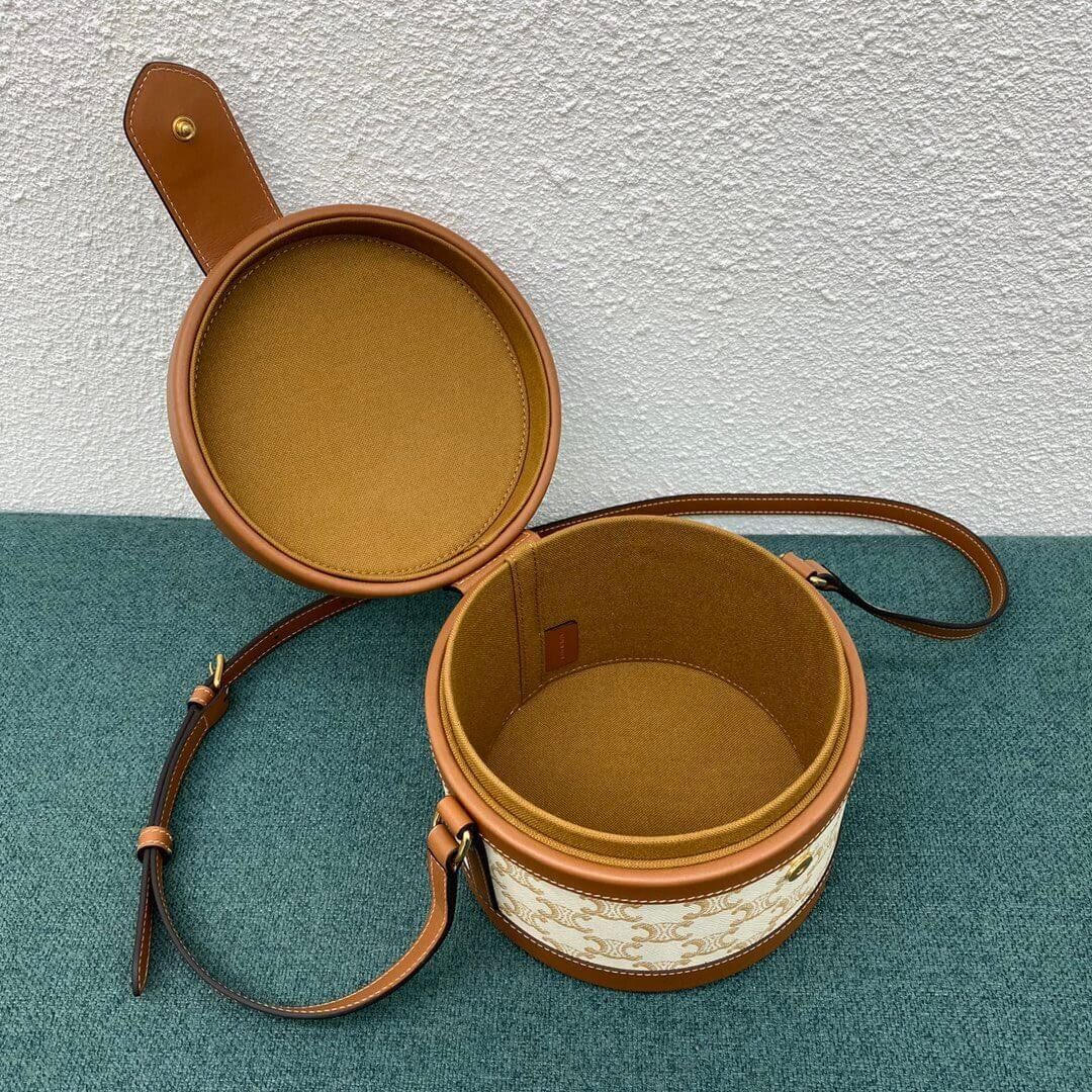 Celine Medium Tambour Bag In Triomphe Canvas 195192 White