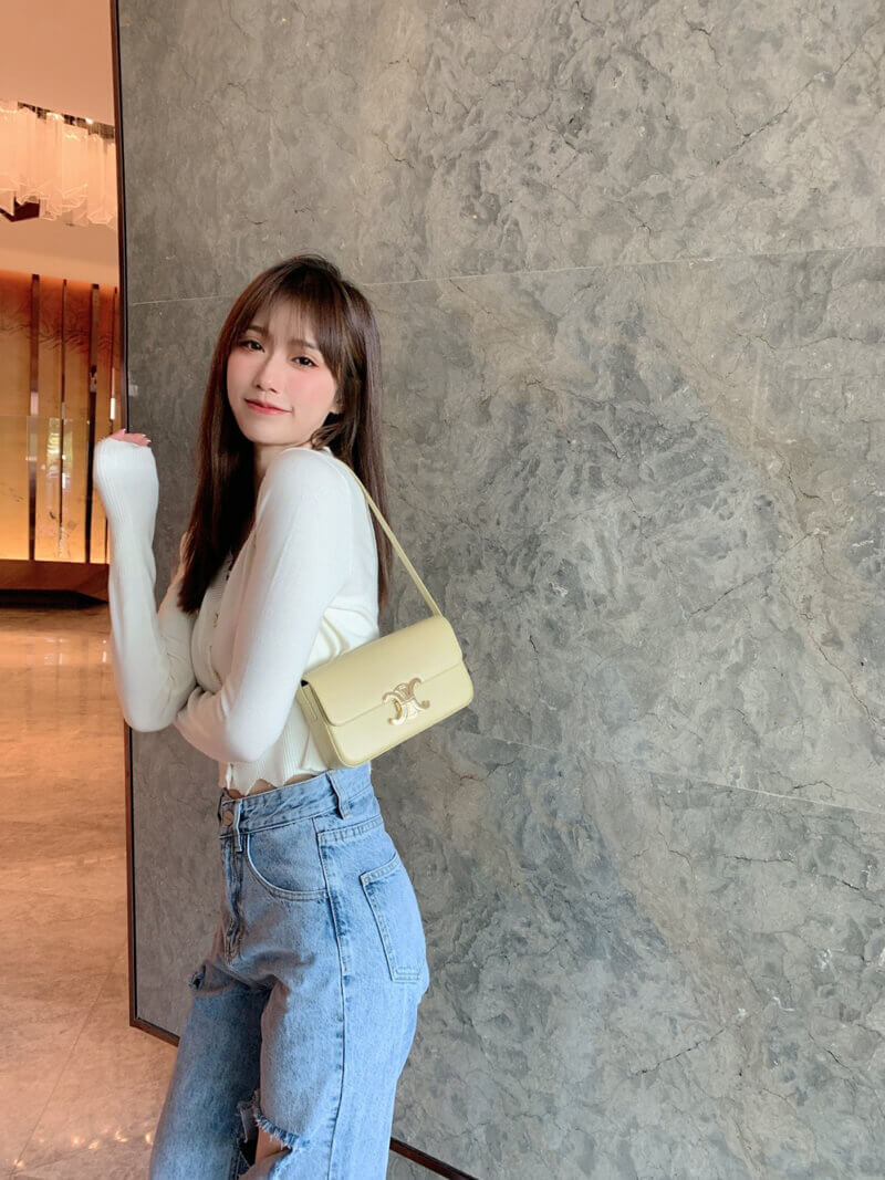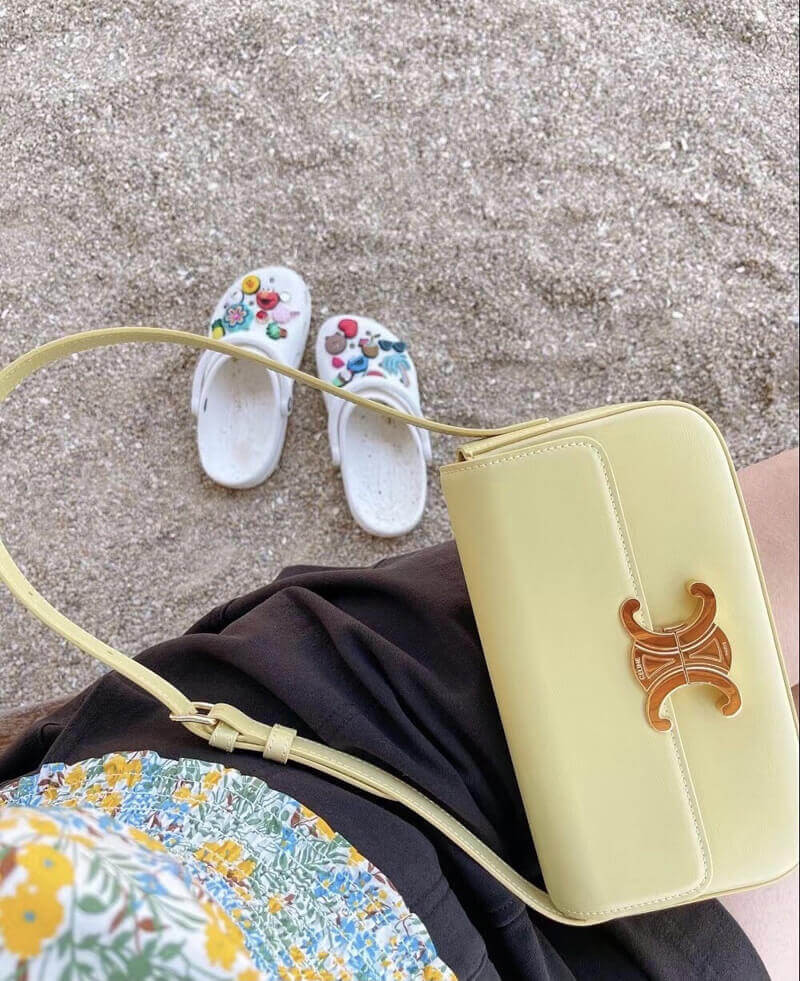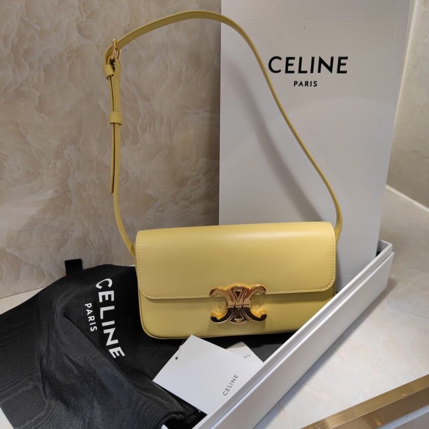 Celine Triomphe Shoulder Bag In Shiny Calfskin 194143 Papyrus