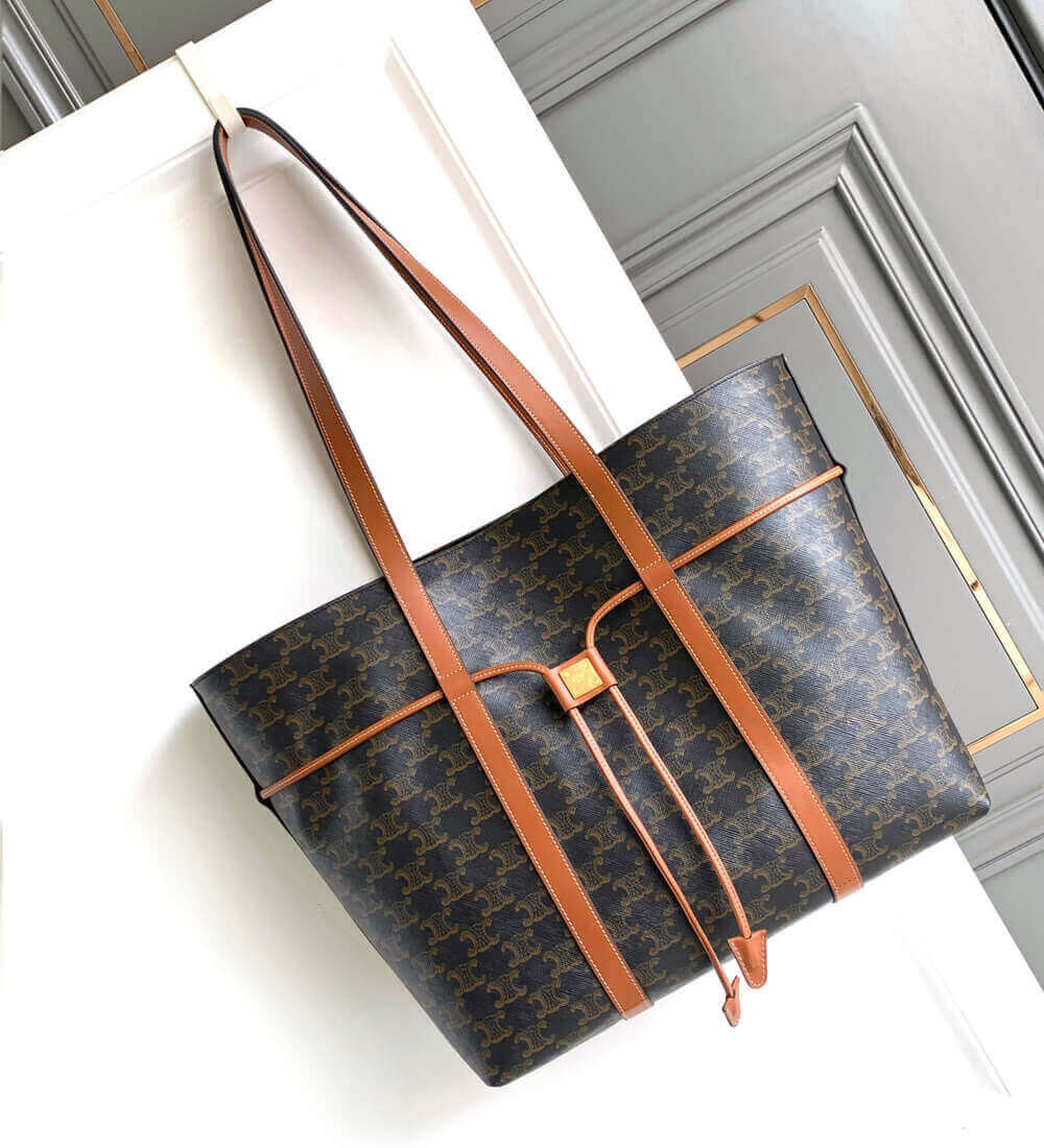 Celine Cabas Drawstring In Triomphe Canvas and Calfskin 113722