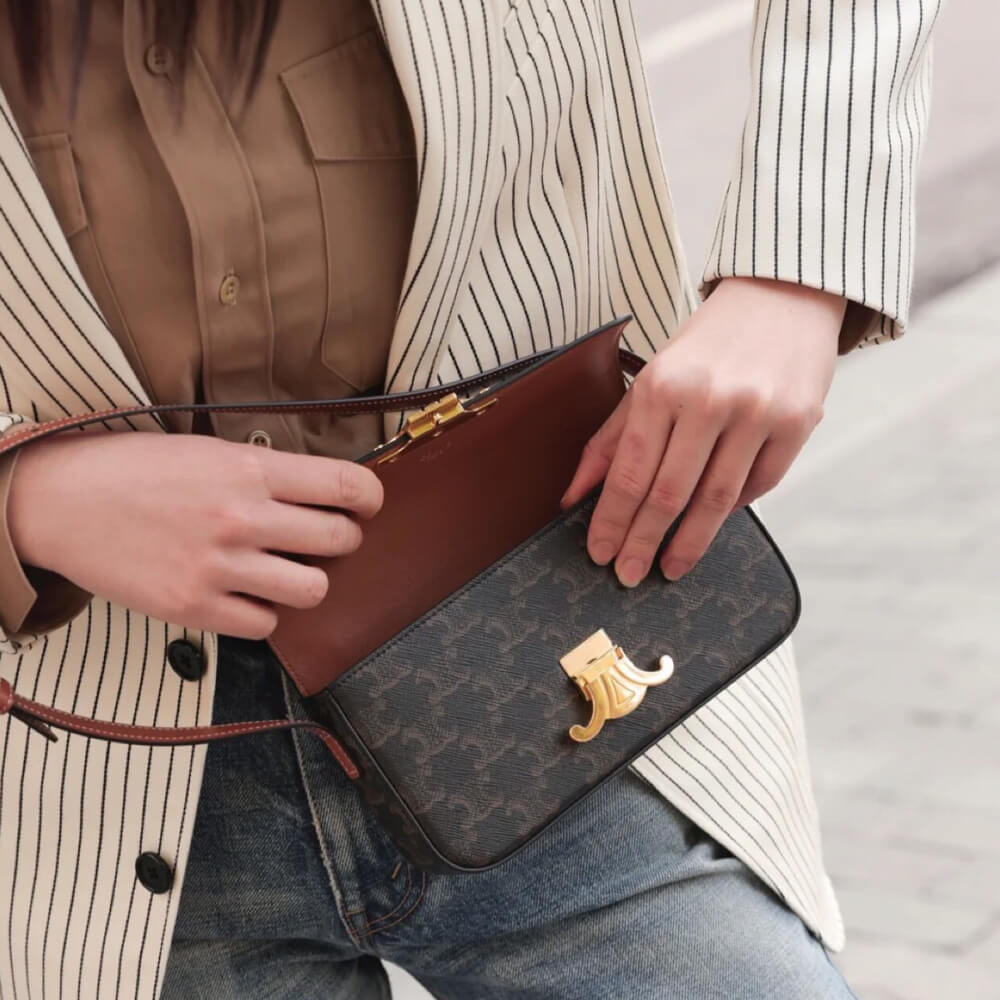 Celine Medium Ava Triomphe Bag In Triomphe Canvas And Calfskin 114492