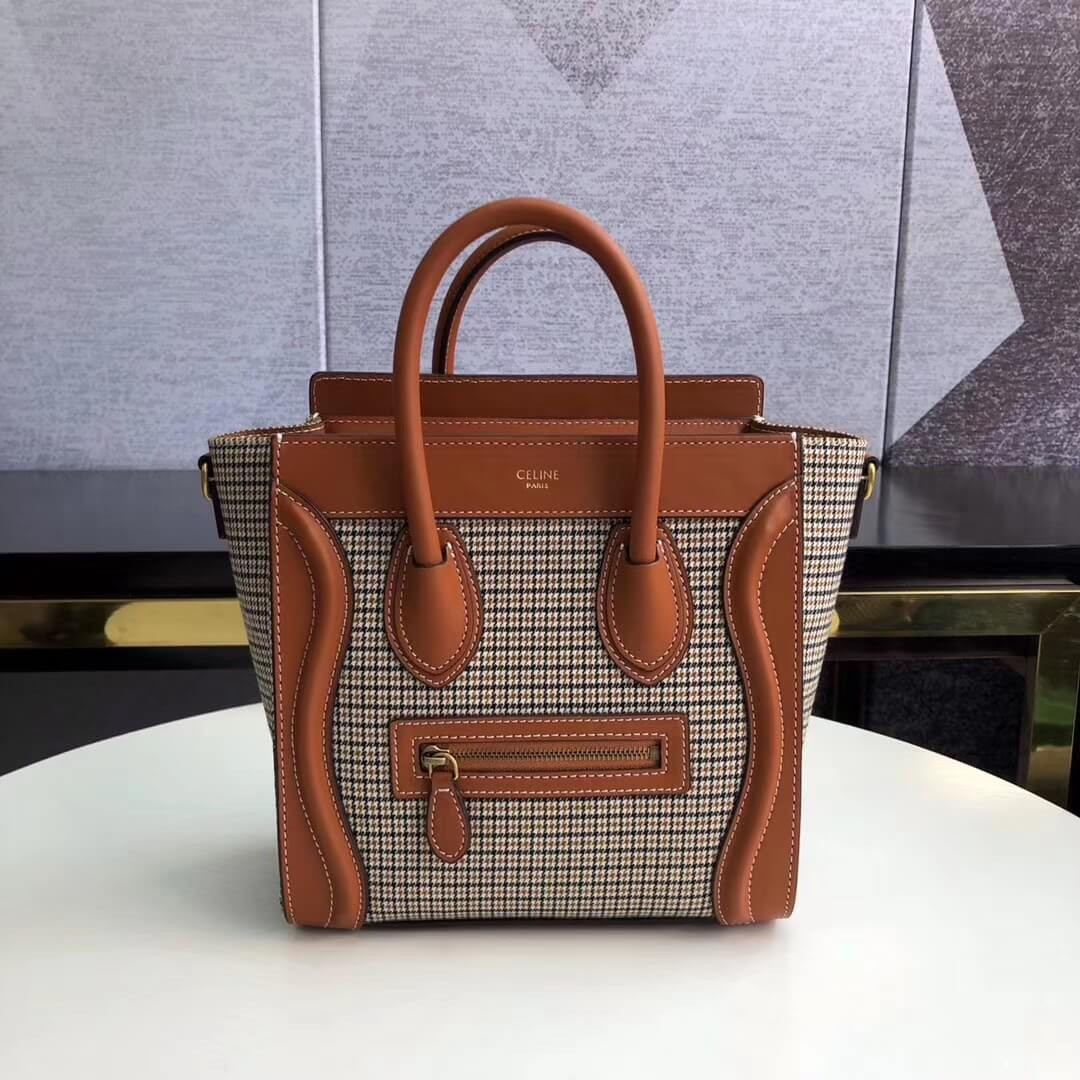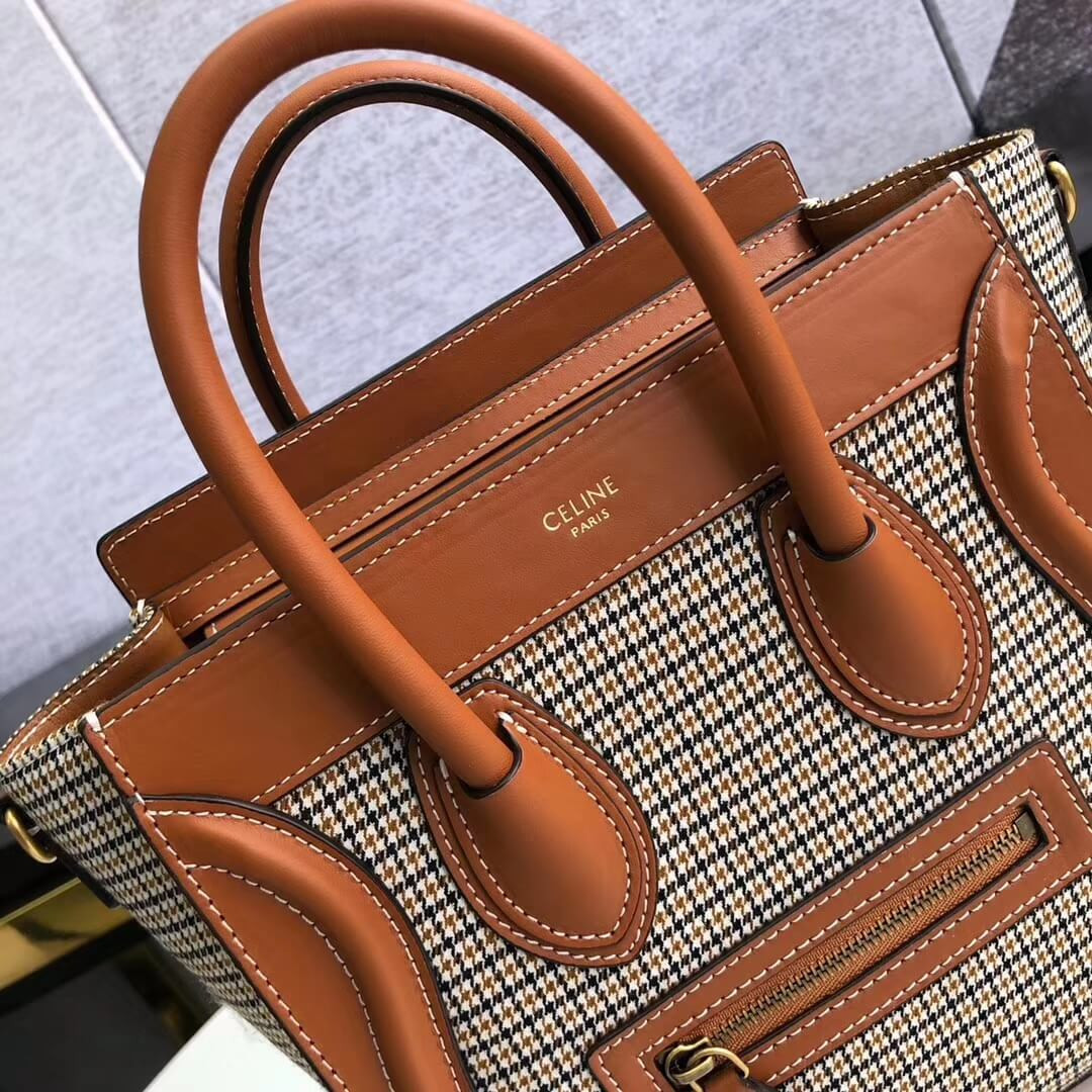 Celine Nano Luggage Bag In Tweed And Smooth Calfskin 189242
