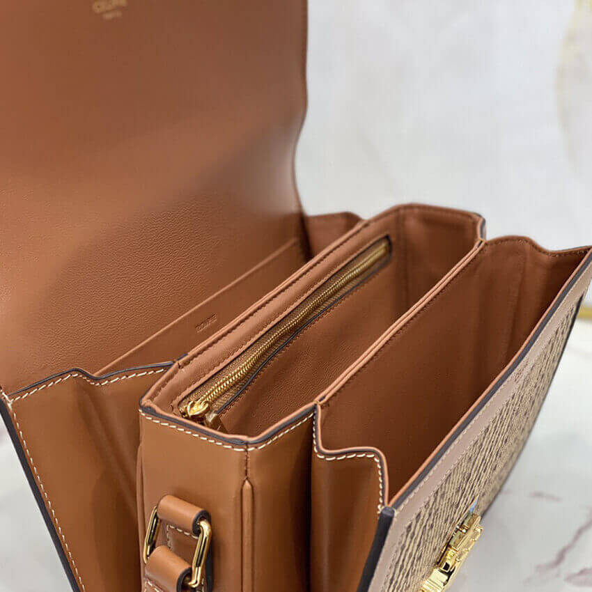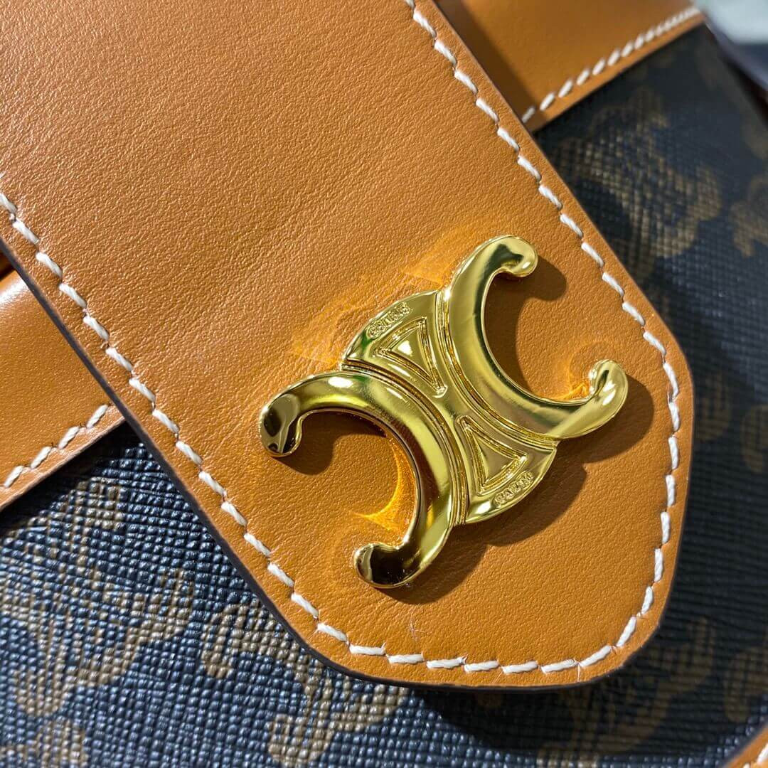 Celie Medium Triomphe Bag in Triomphe Textile and Calfskin 191242 Brown/Tan