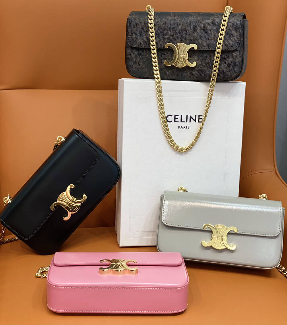 Celine Chain Shoulder Bag Claude In Triomphe Canvas 197992