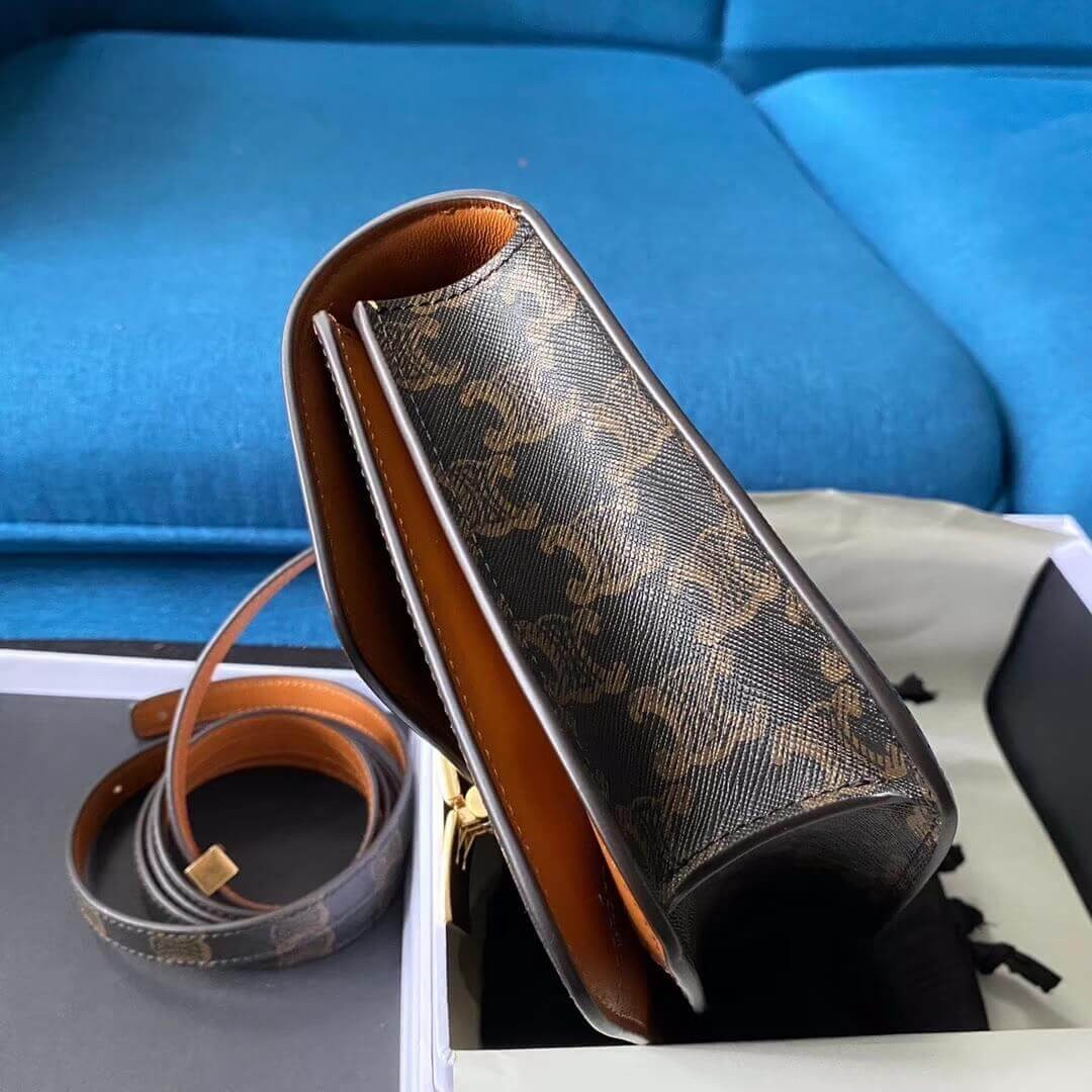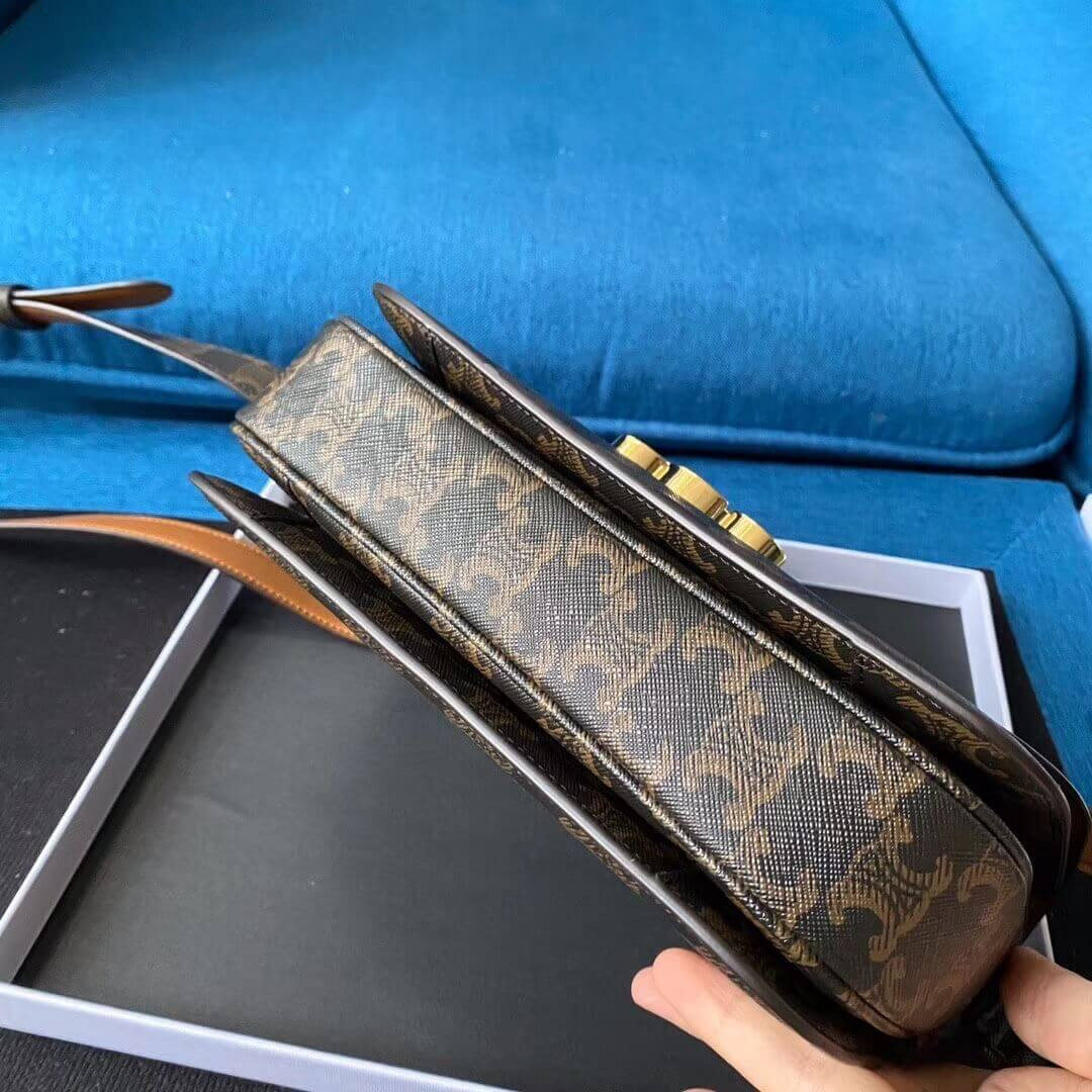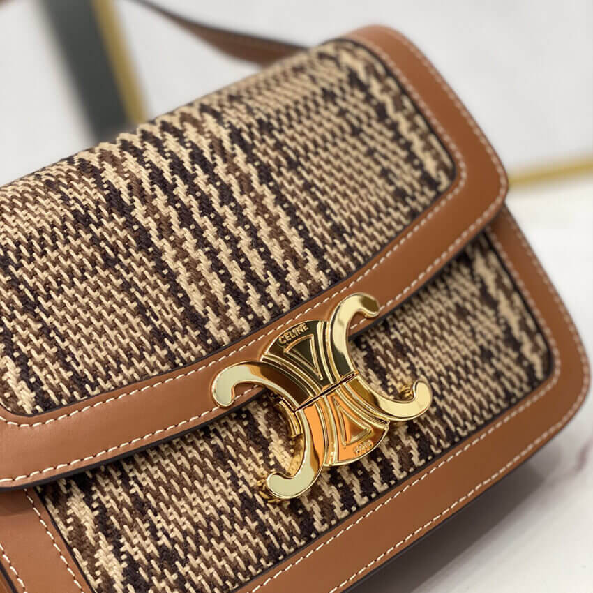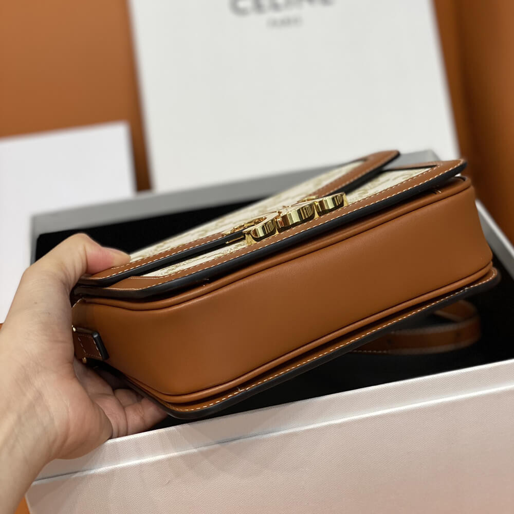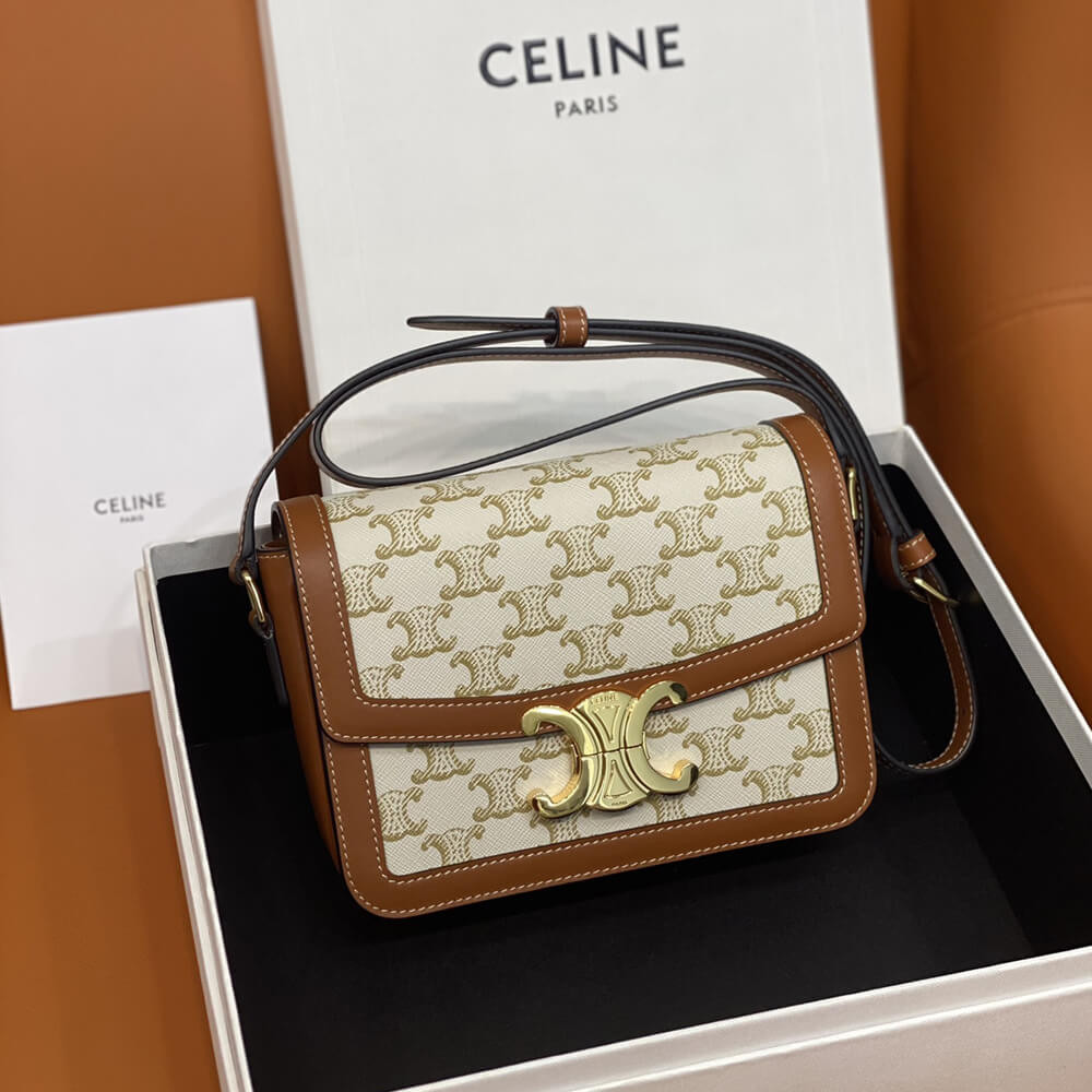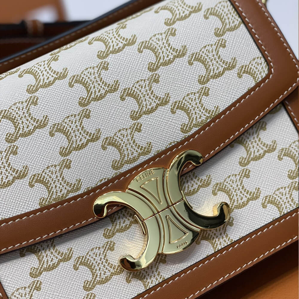 Celie Teen Triomphe Bag in Triomphe Textile and Calfskin 188882 Brown/Tan