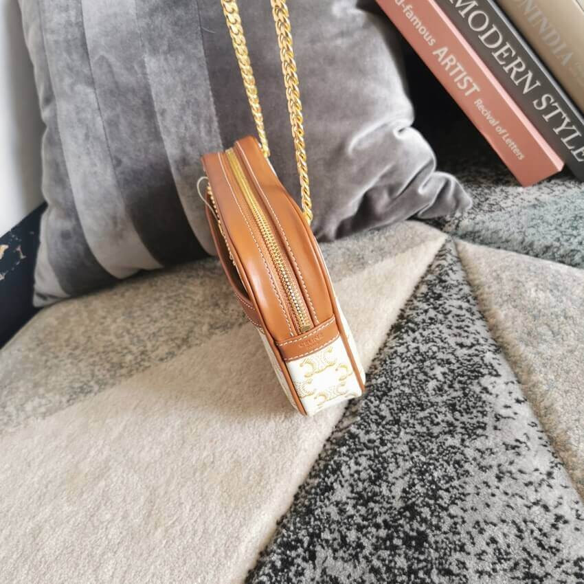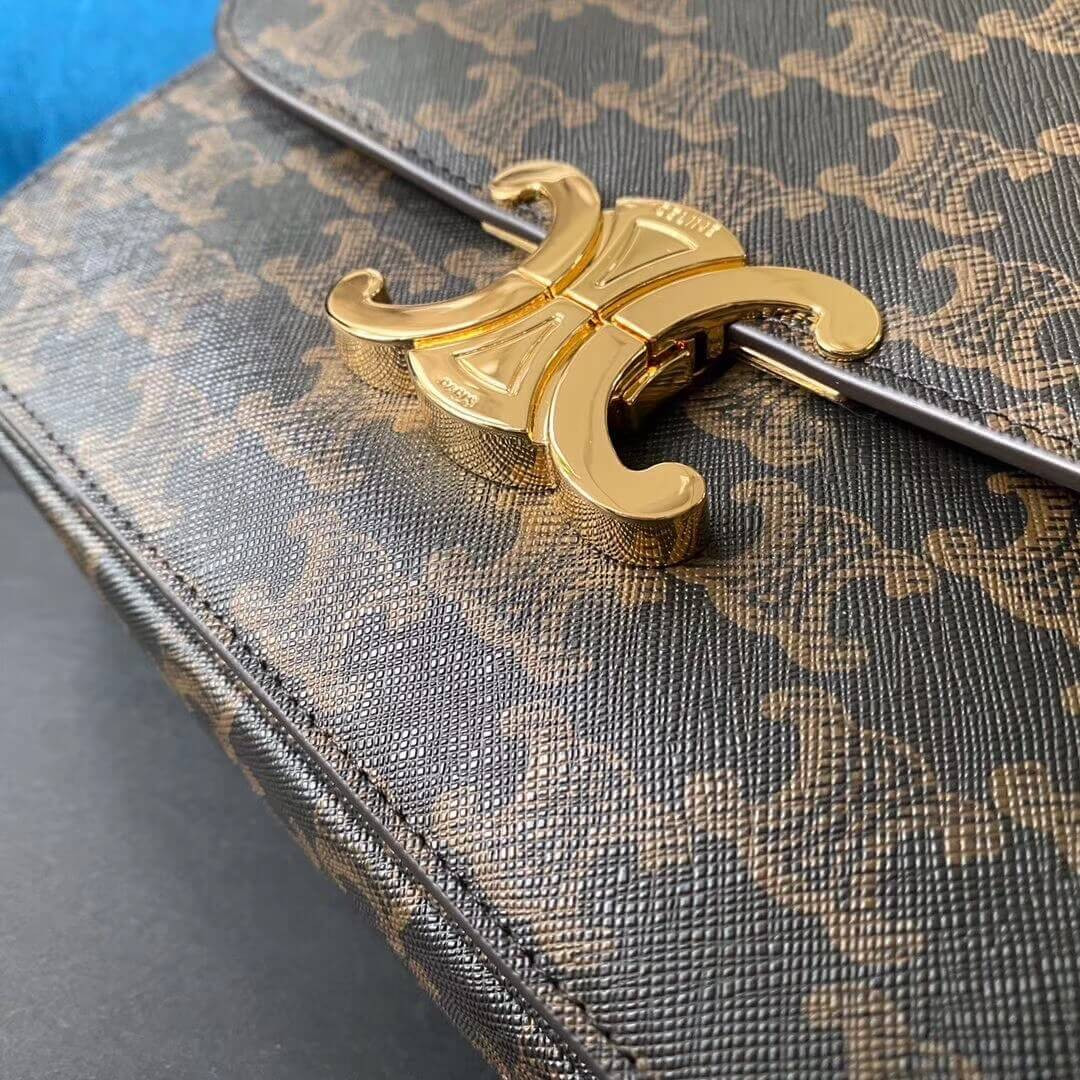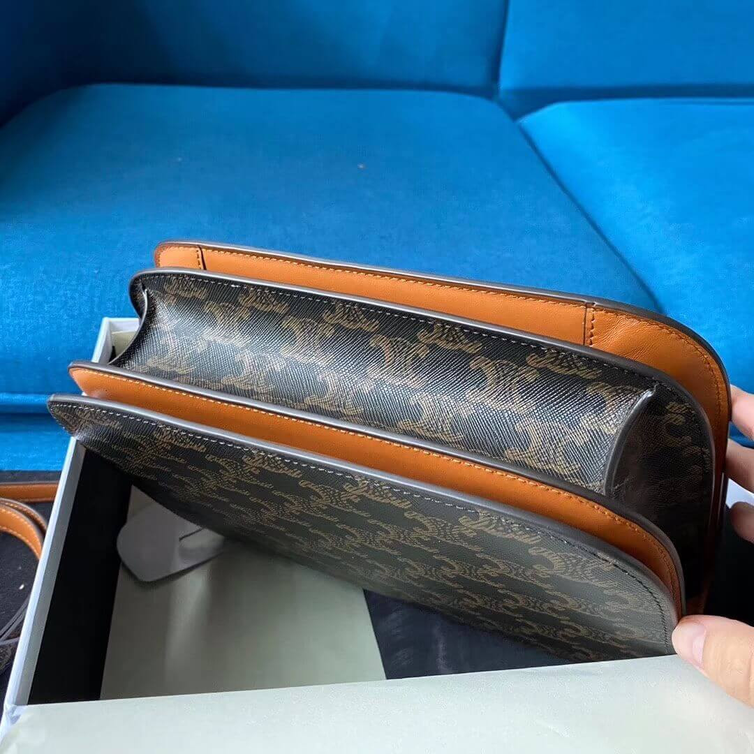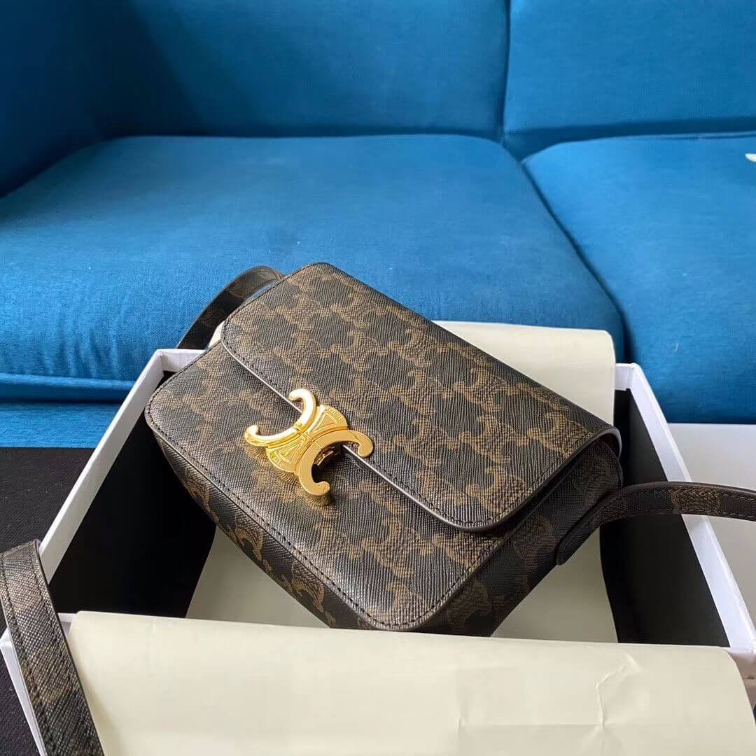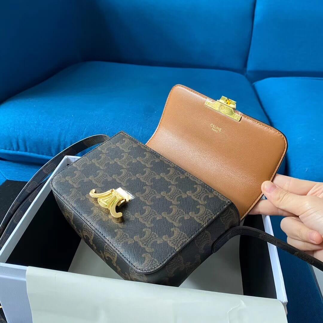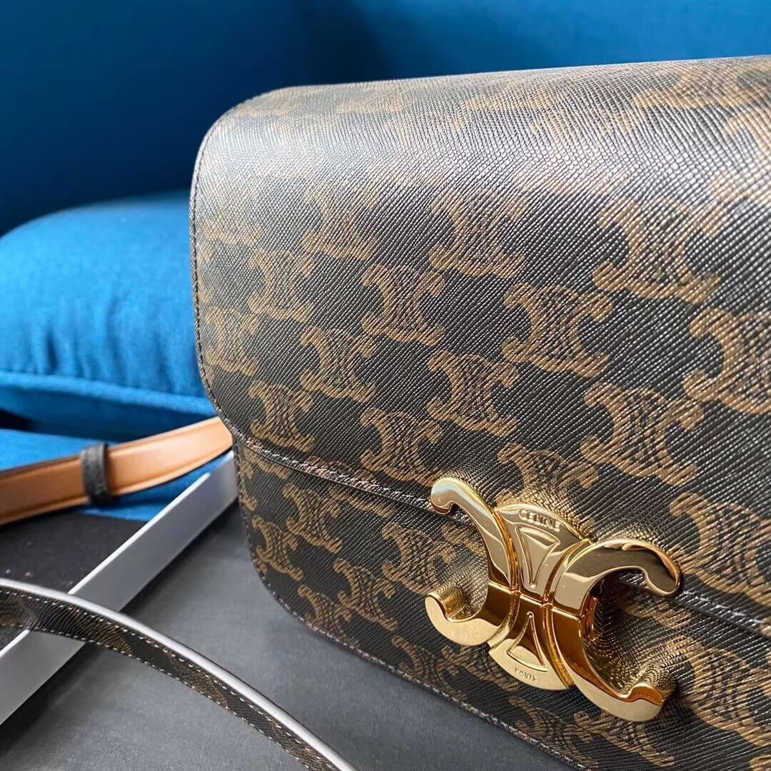 Celie Teen Triomphe Bag in Triomphe Textile and Calfskin 188882 Brown/Tan
