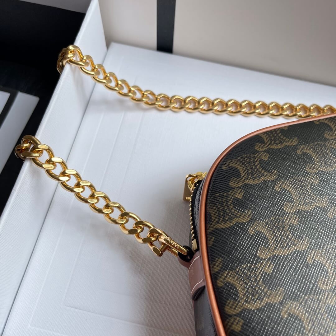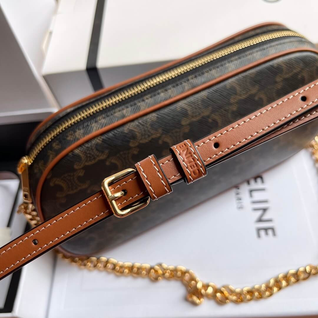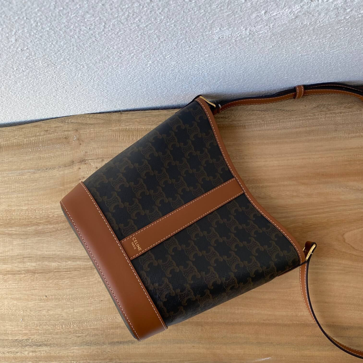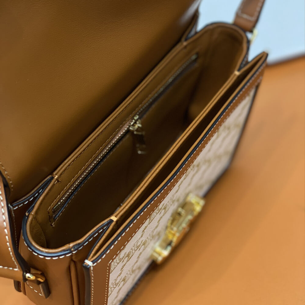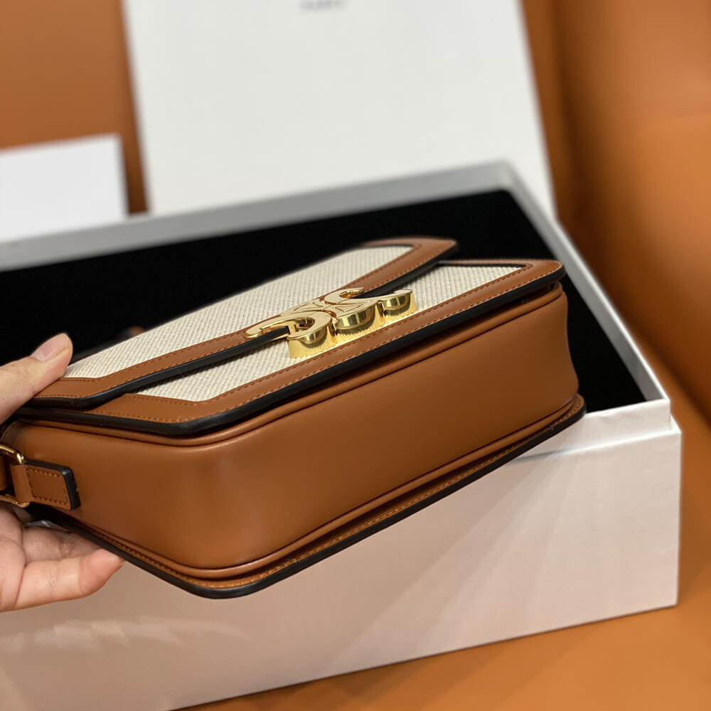 Celie Teen Triomphe Bag in Triomphe Textile and Calfskin 188882 Brown/Tan