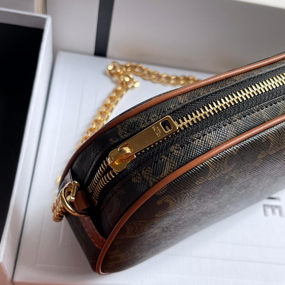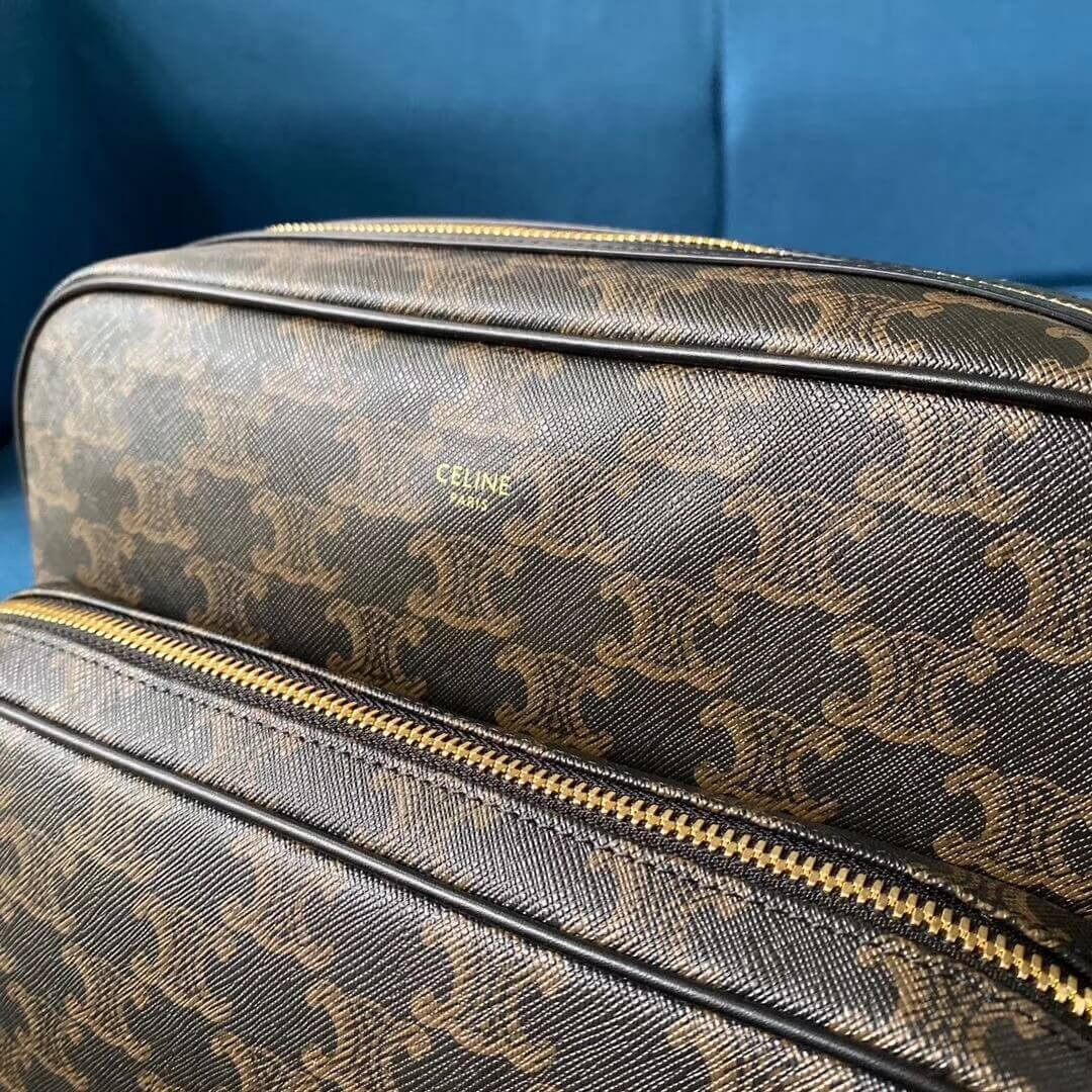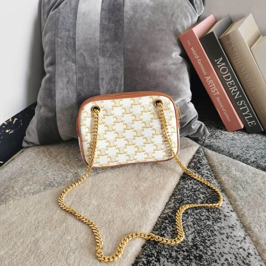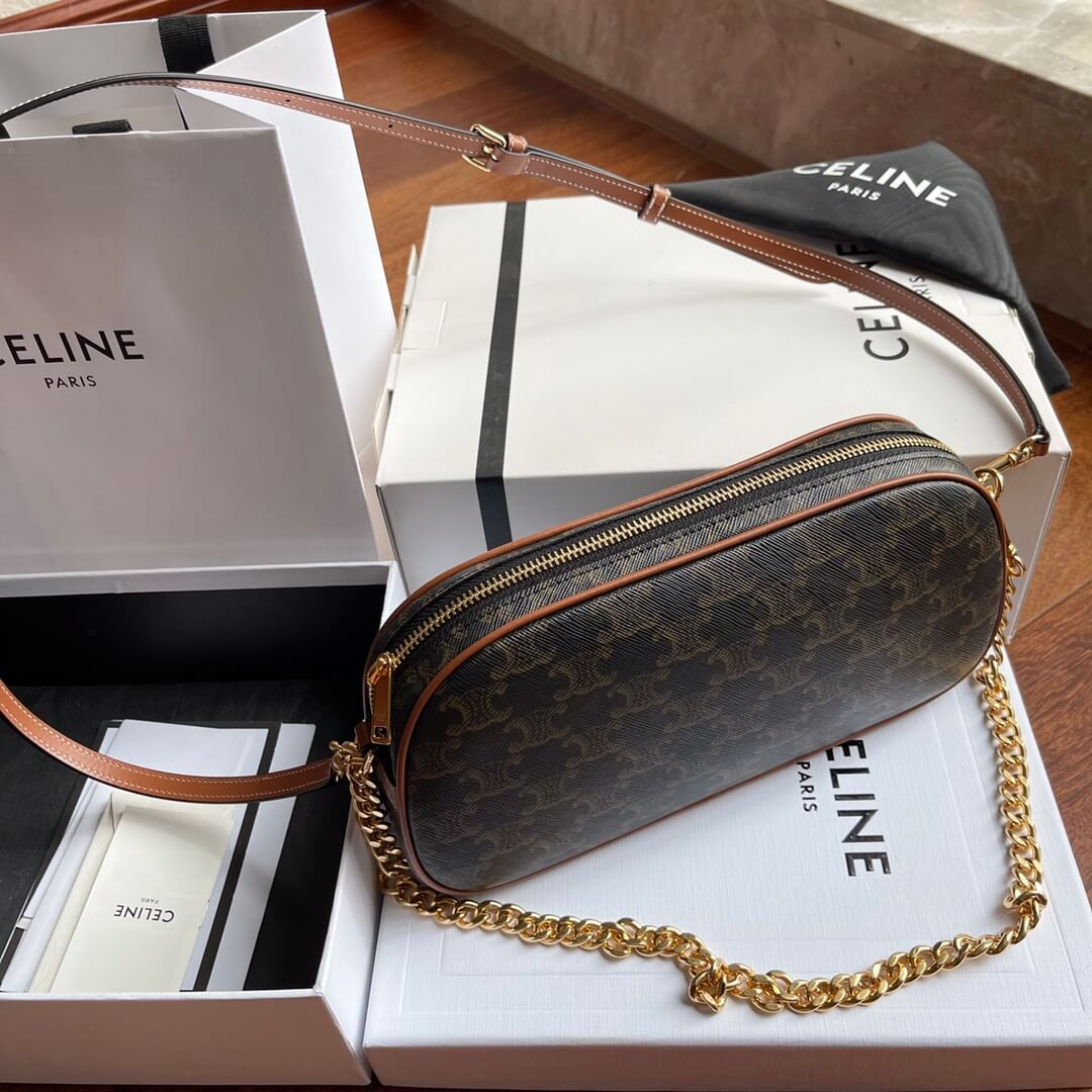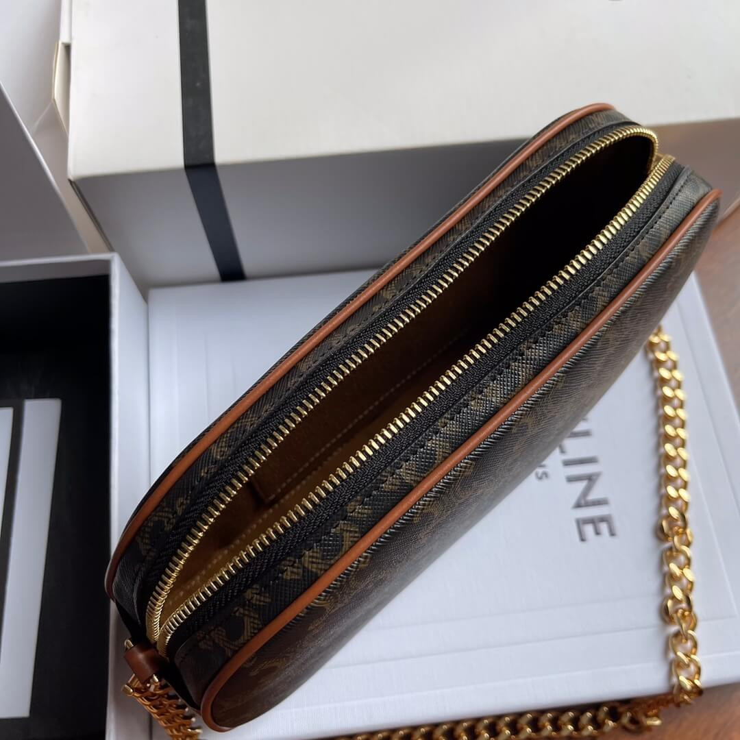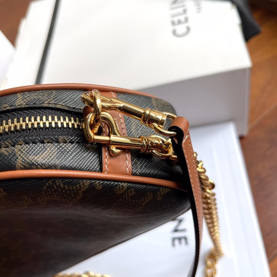 Celie Teen Triomphe Bag in Triomphe Textile and Calfskin 188882 Brown/Tan
