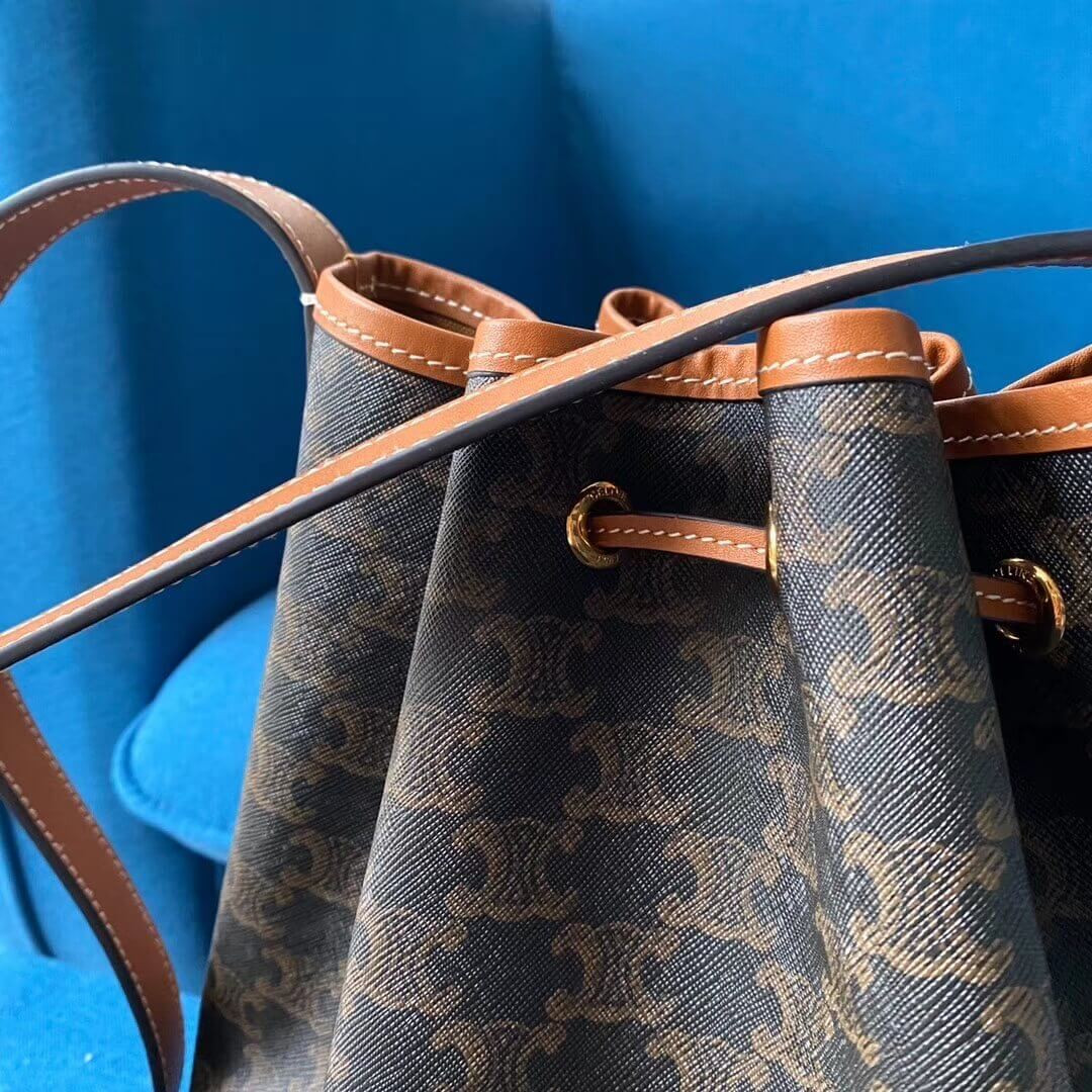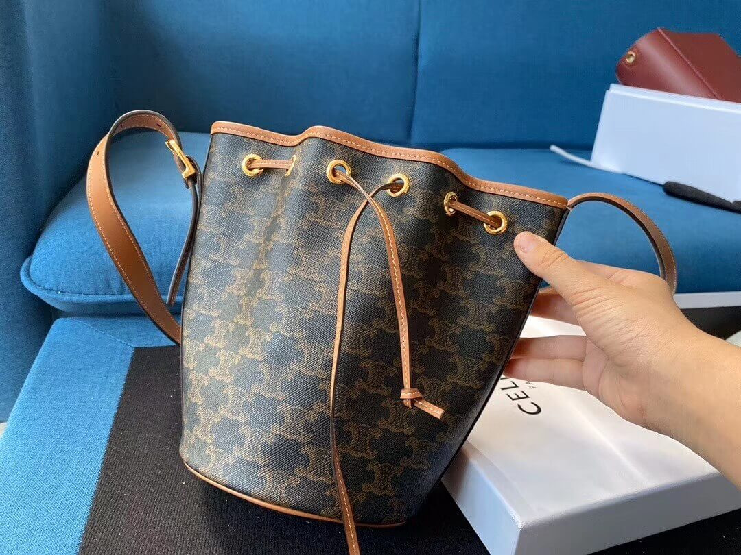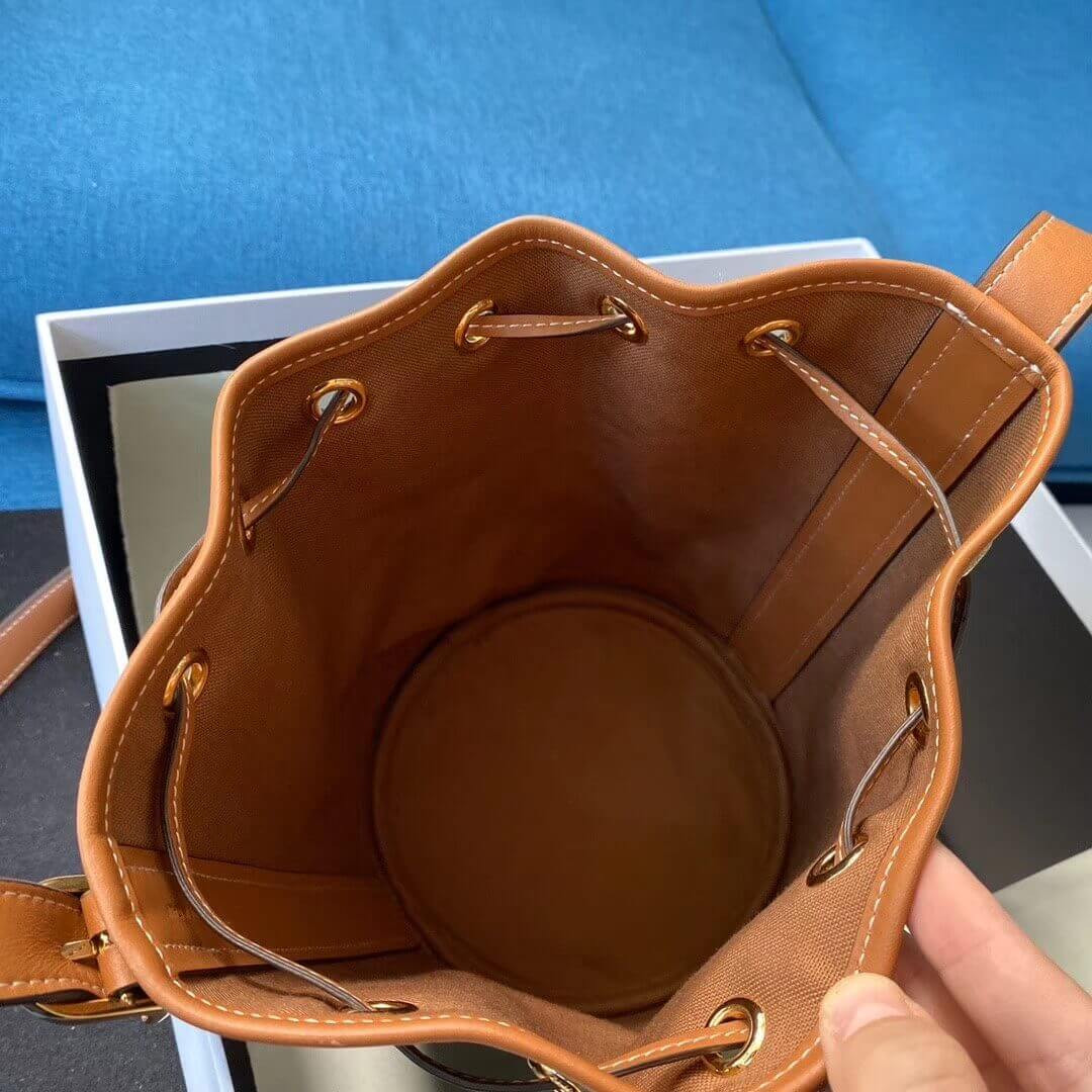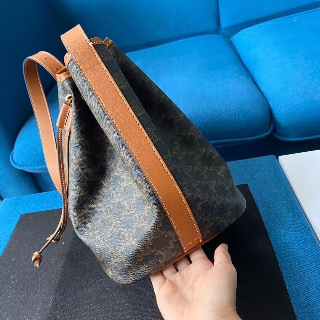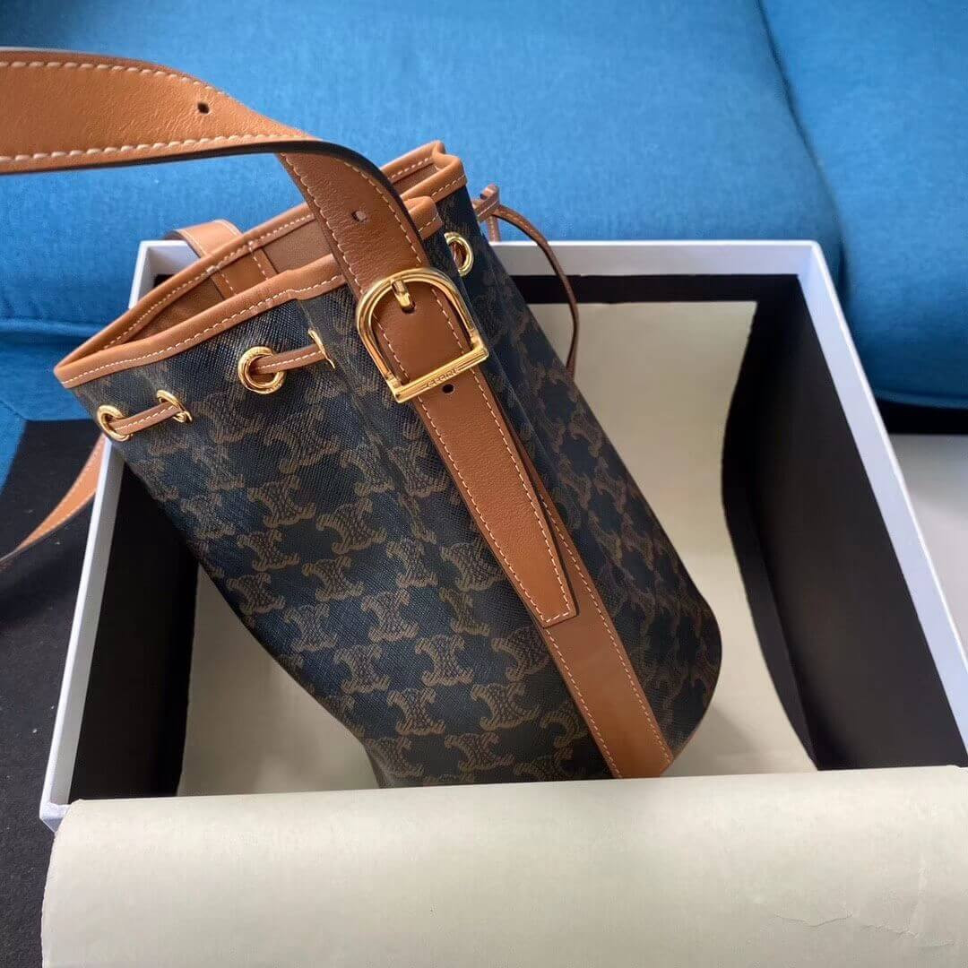 Celine Small Bucket In Triomphe Canvas And Calfskin 191442