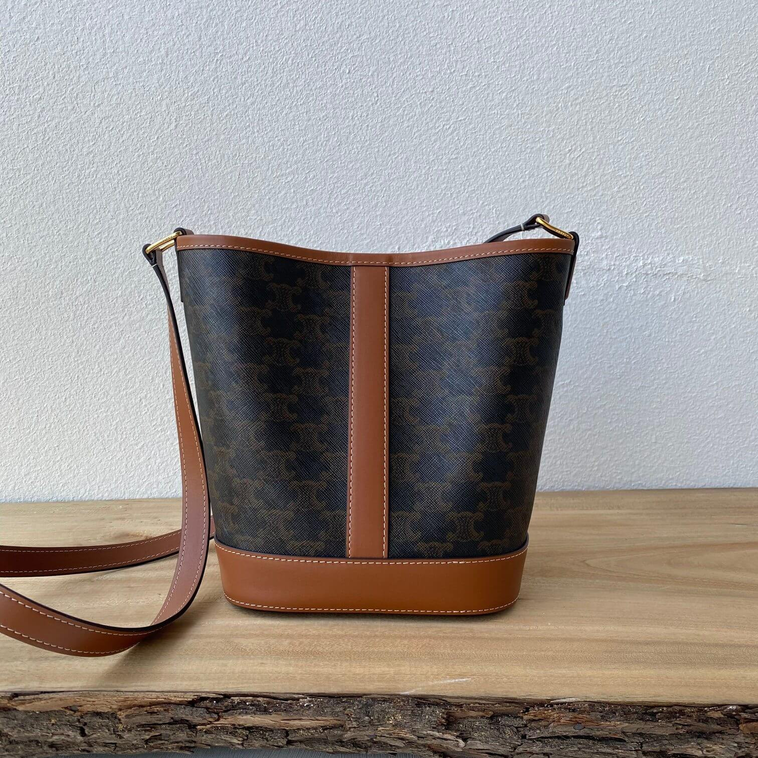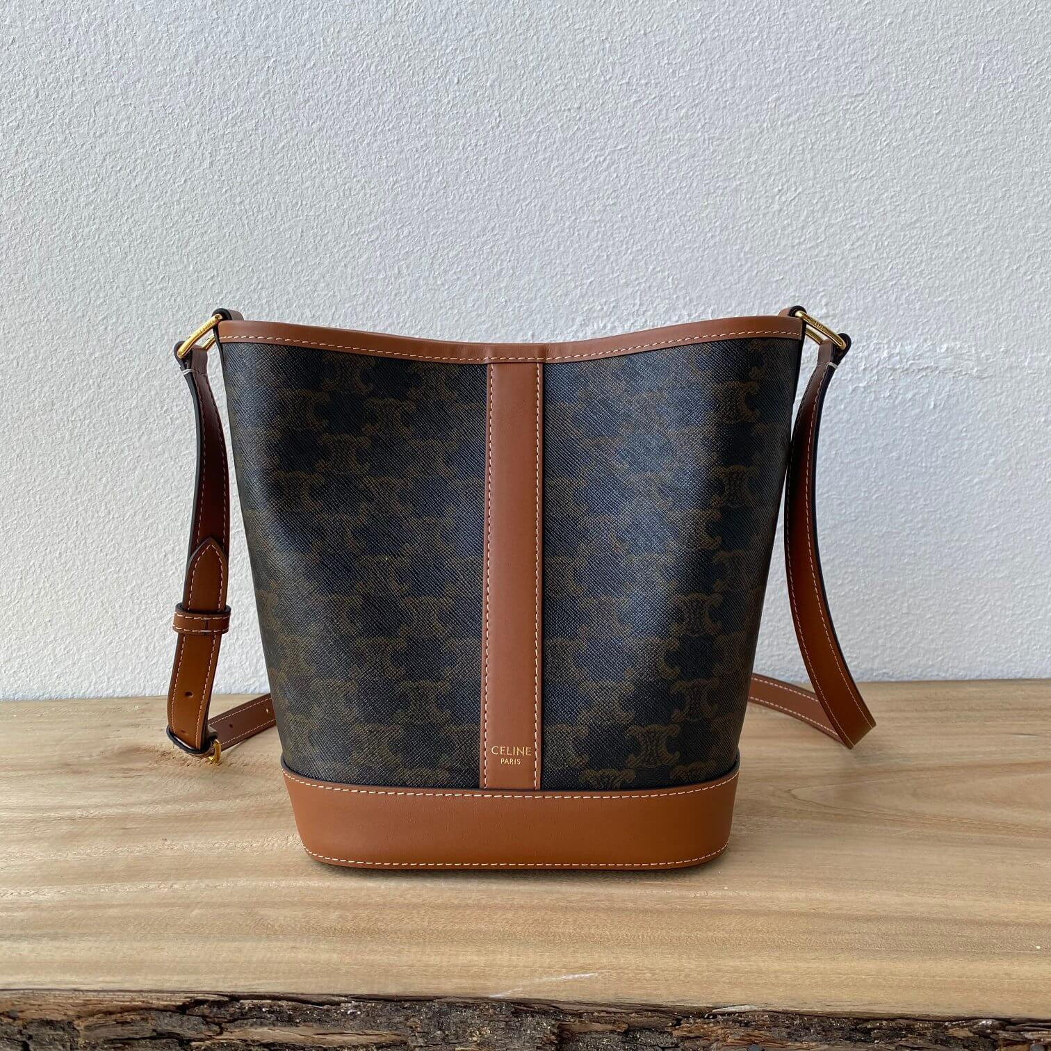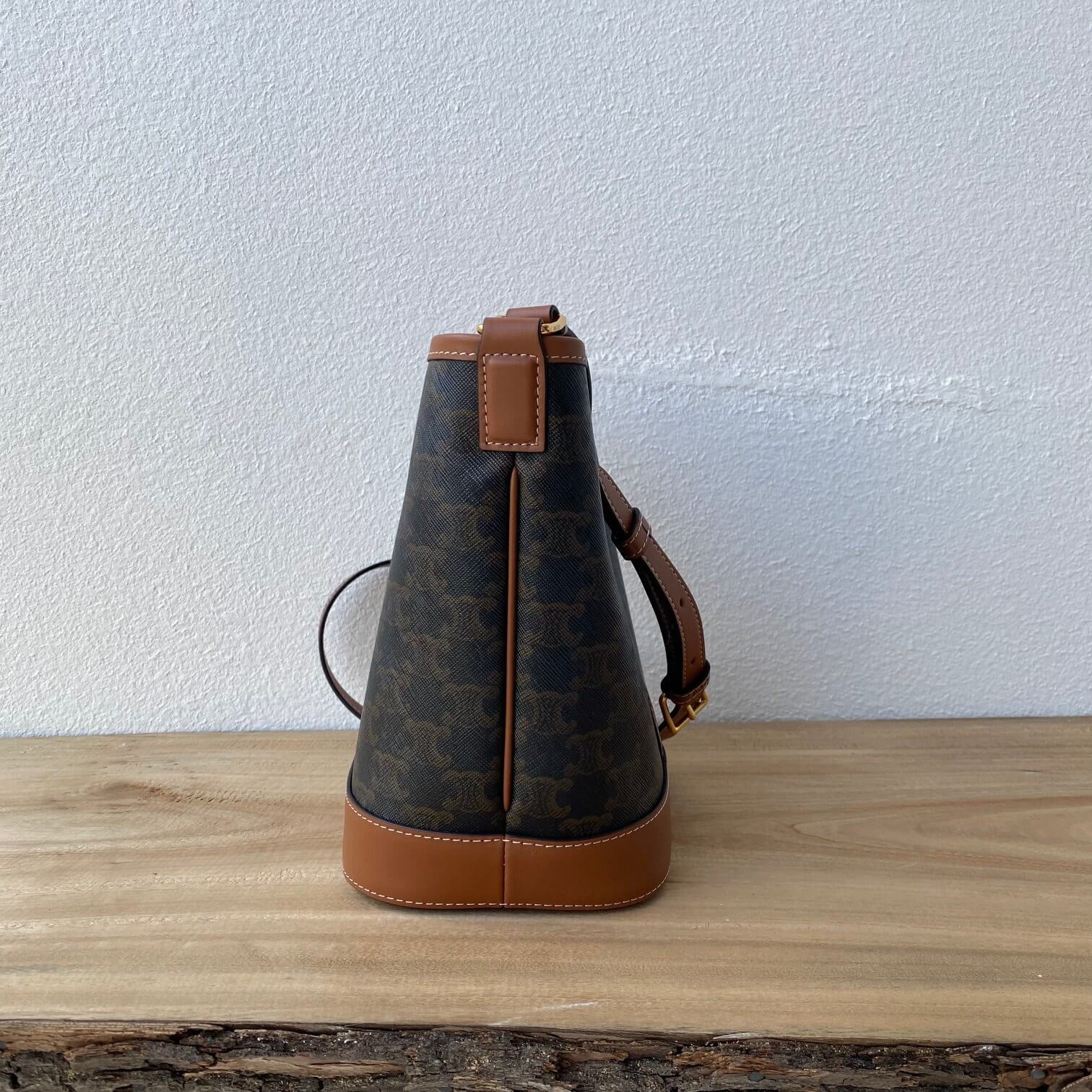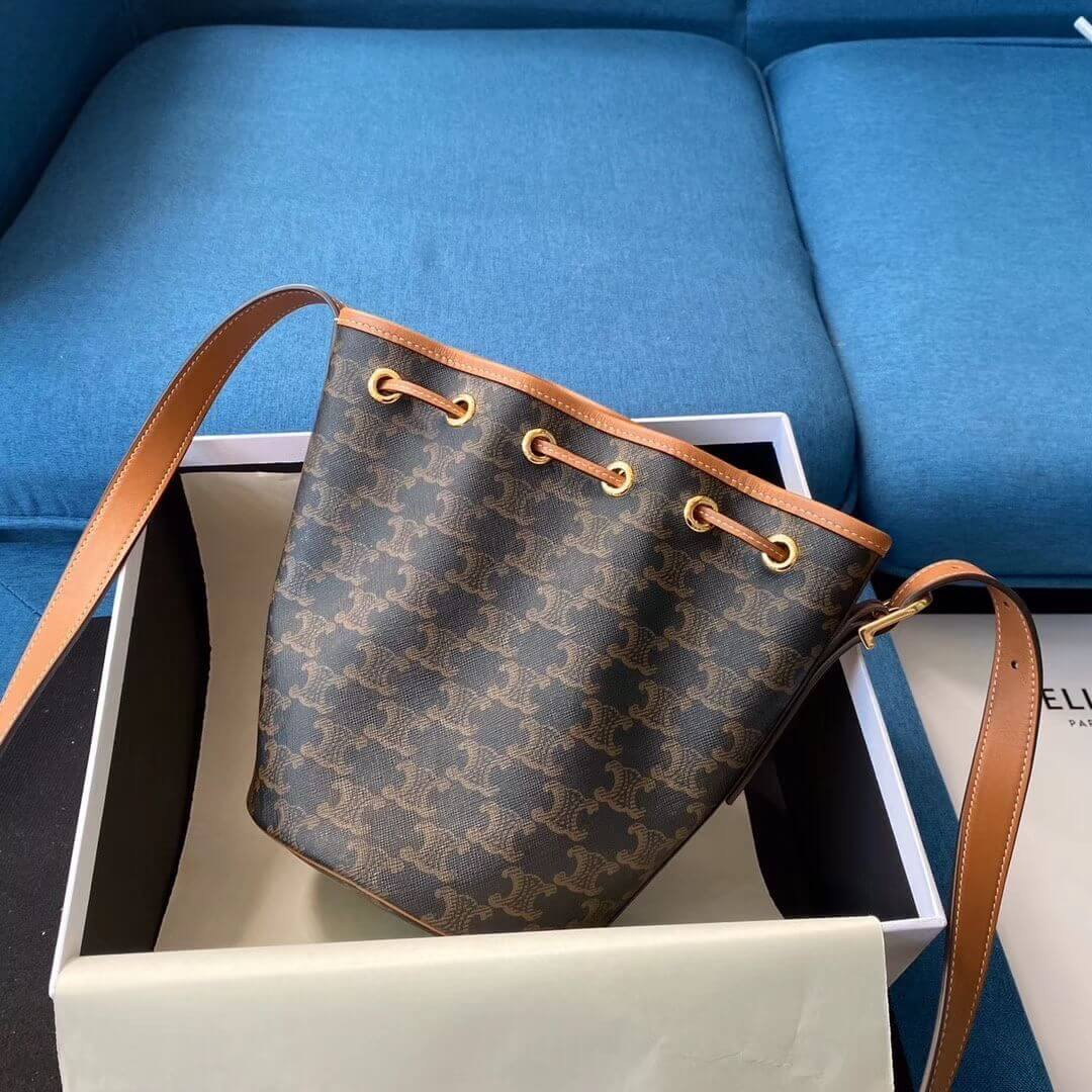 Celine Small Bucket In Triomphe Canvas And Calfskin 191442