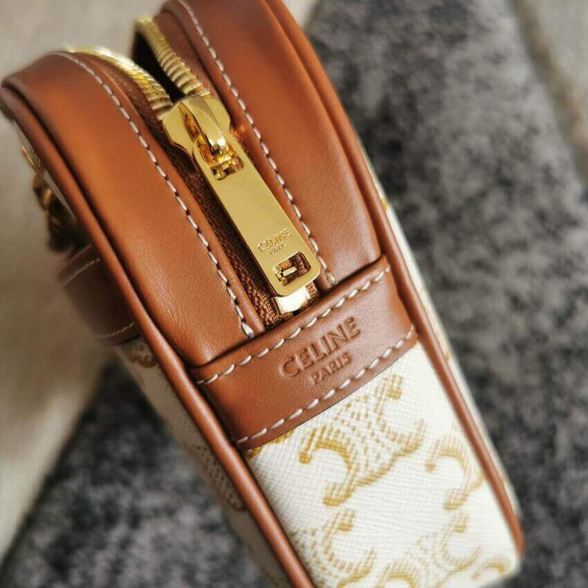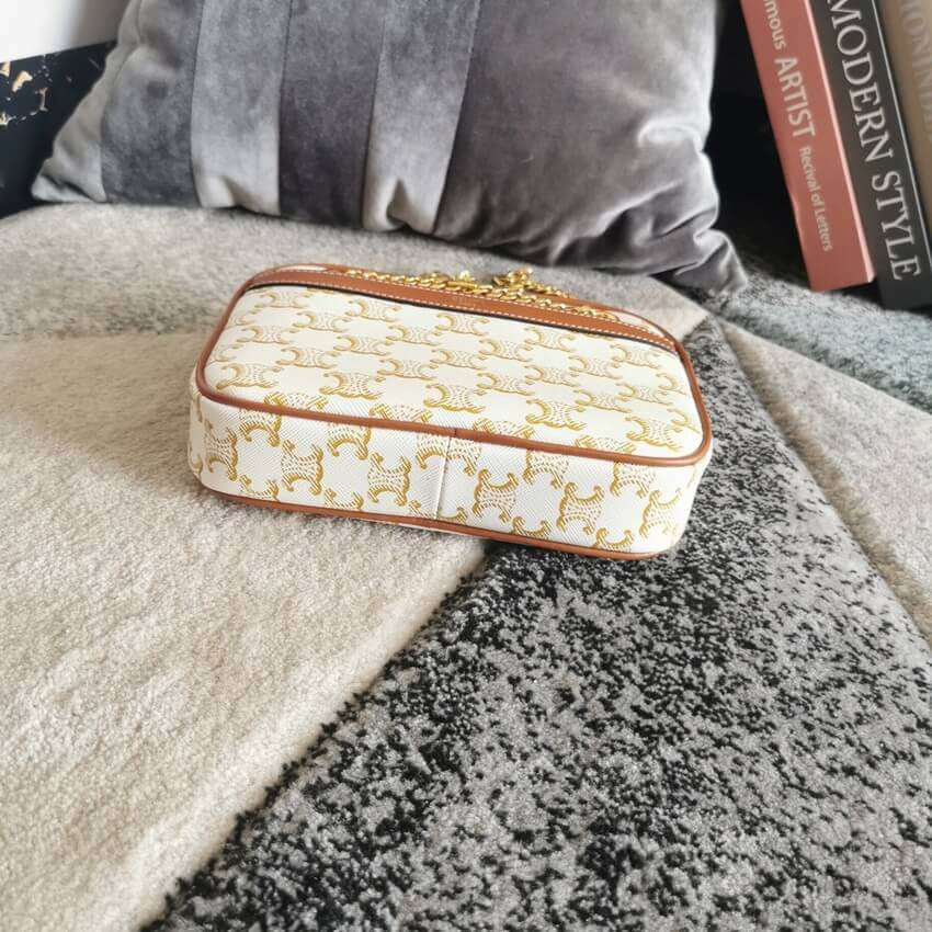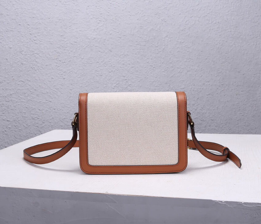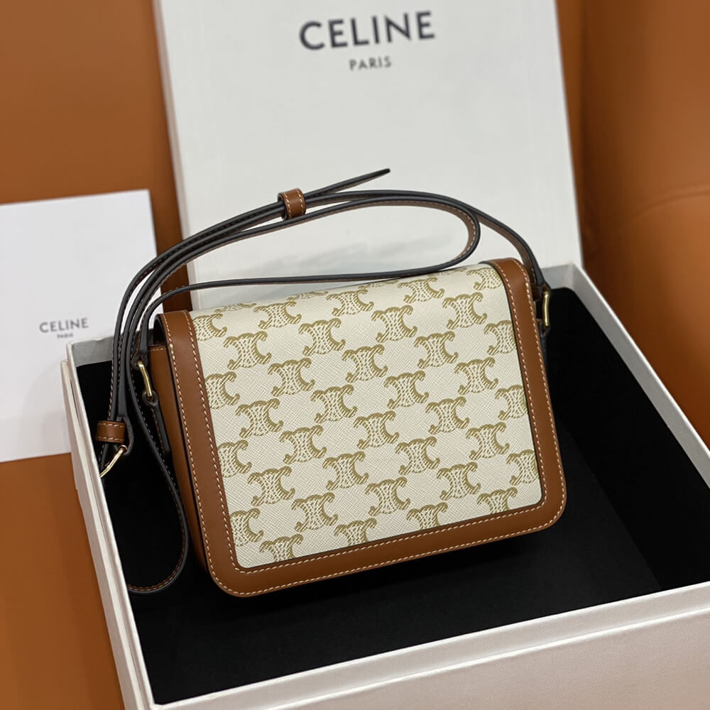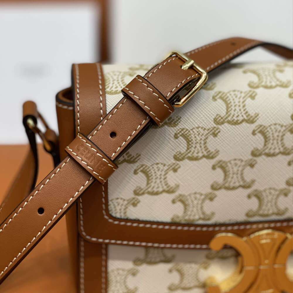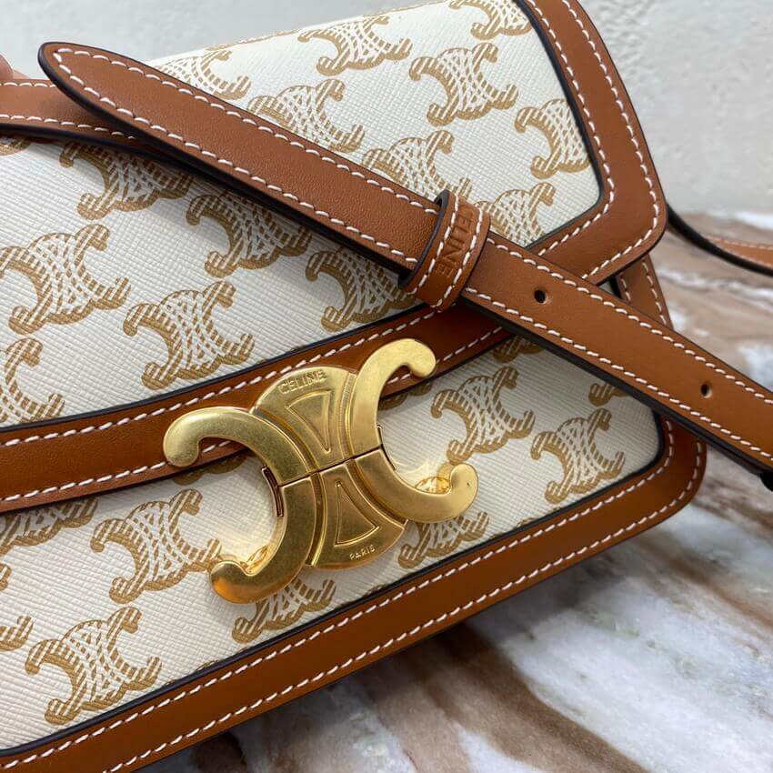 Celine Teen Triomphe Bag in Textile and Natural Calfskin 188882 Tan/White