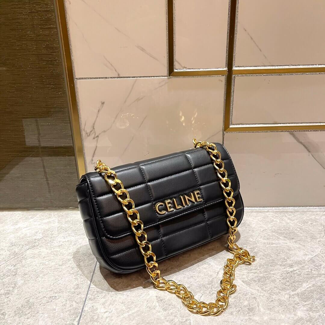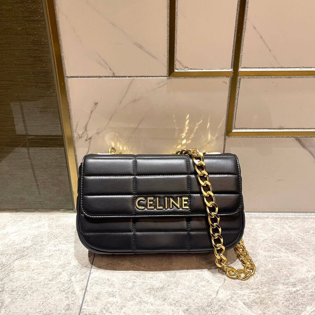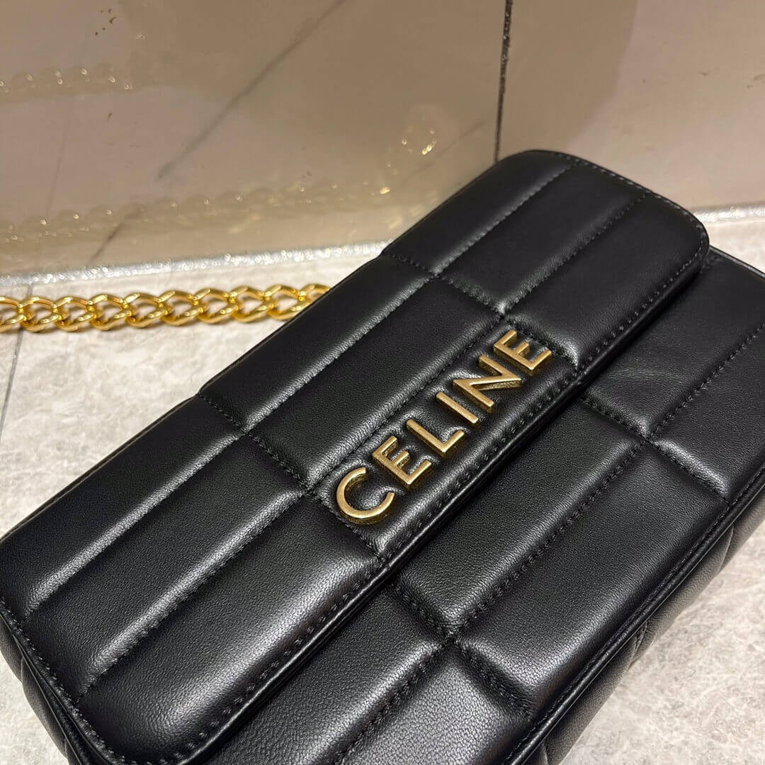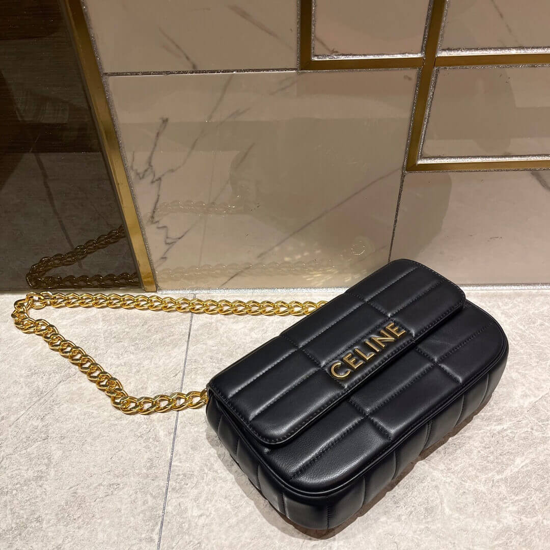Celine Matelasse Chain Shoulder Bag 111273 Quilted Black