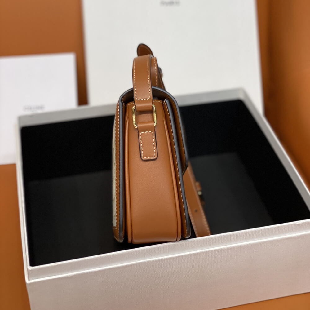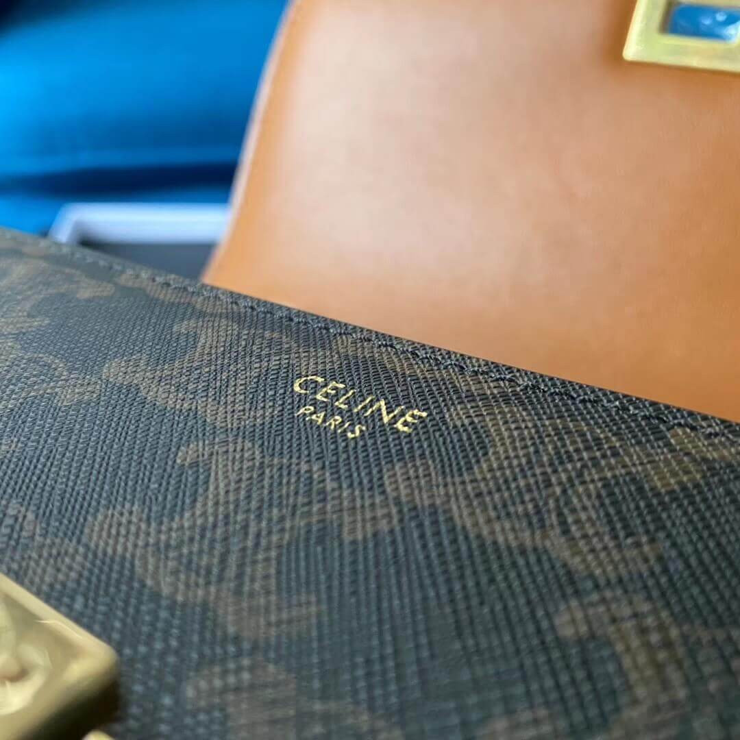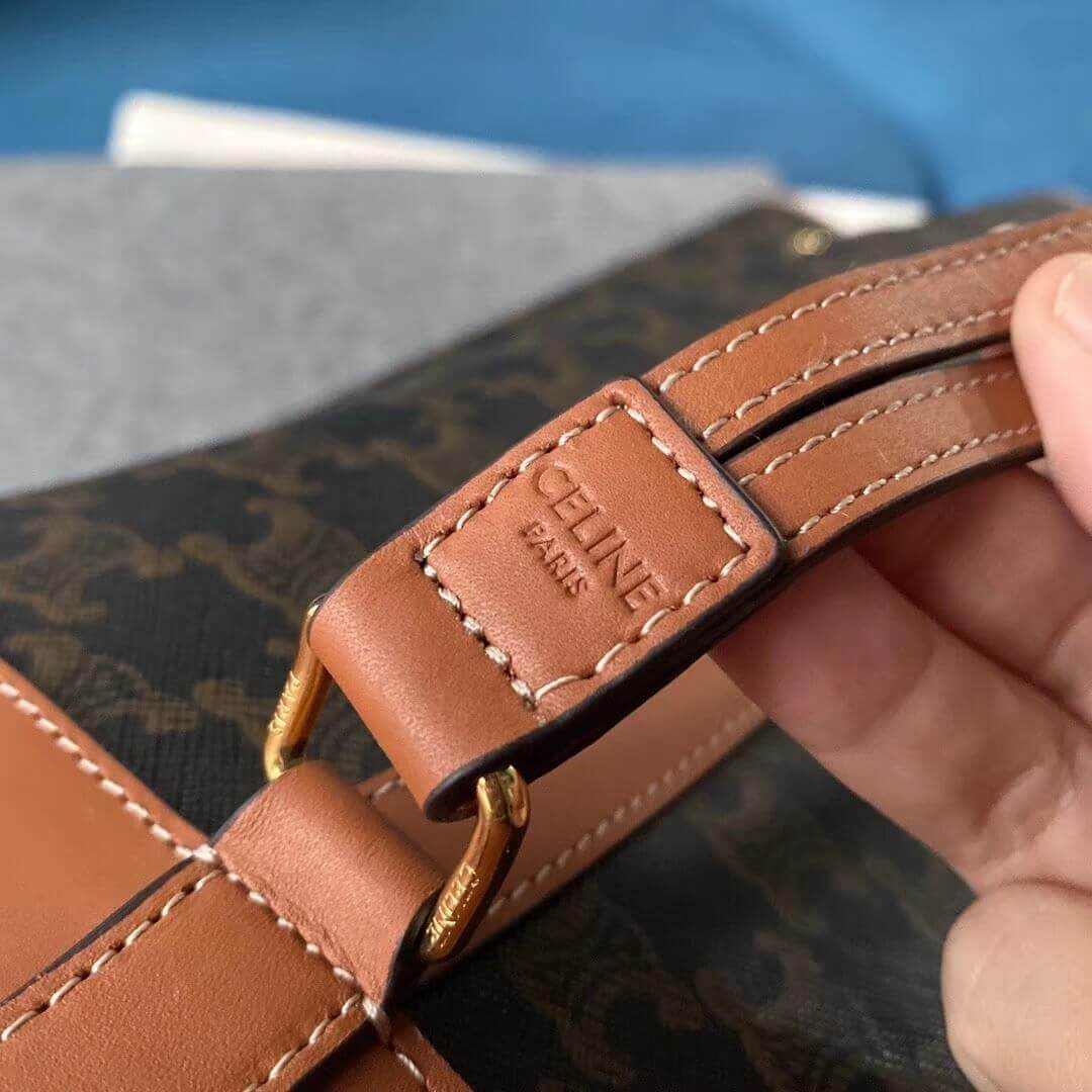 Celine Teen Triomphe Bag in Triomphe Canvas and Calfskin 188882 Tan