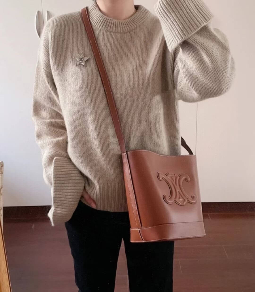 Celine Bucket Maillon Triomphe In Natural Calfskin 193043