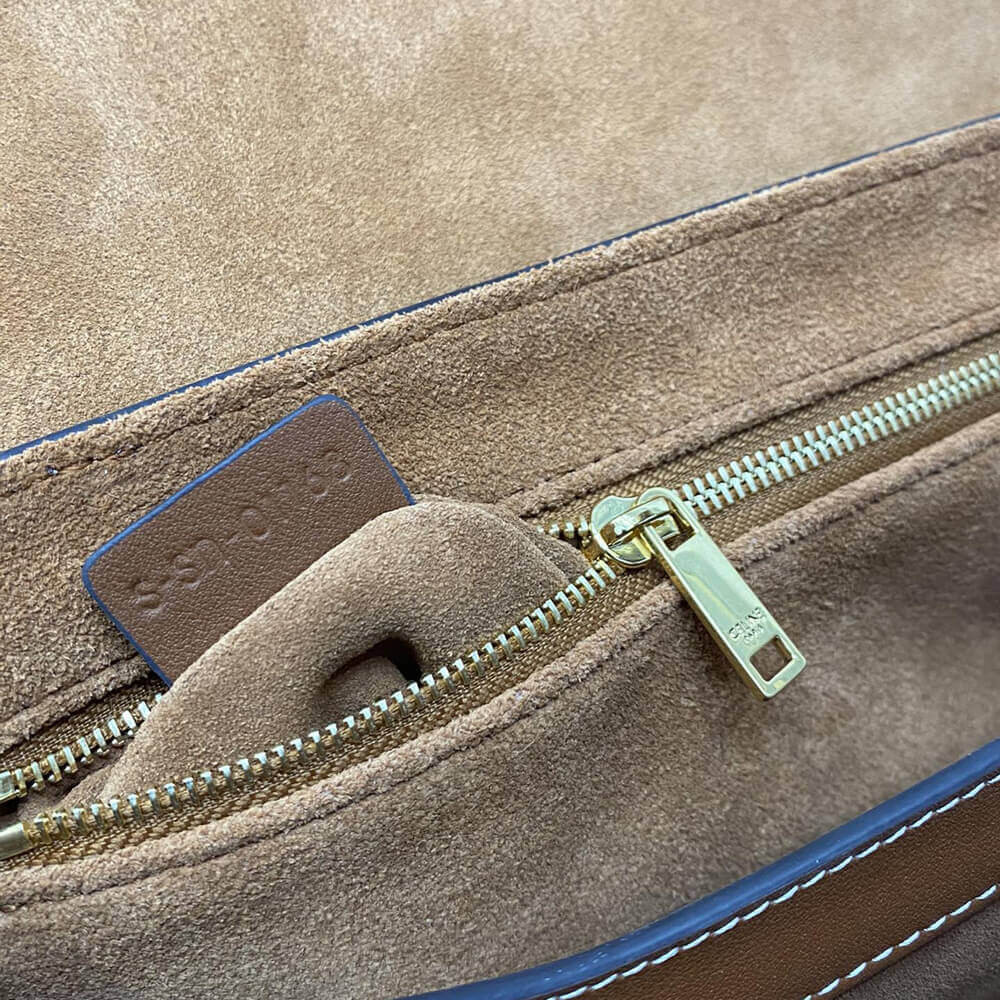 Celine Teen Triomphe Bag In Textile and Calfskin Natural/Tan 188423