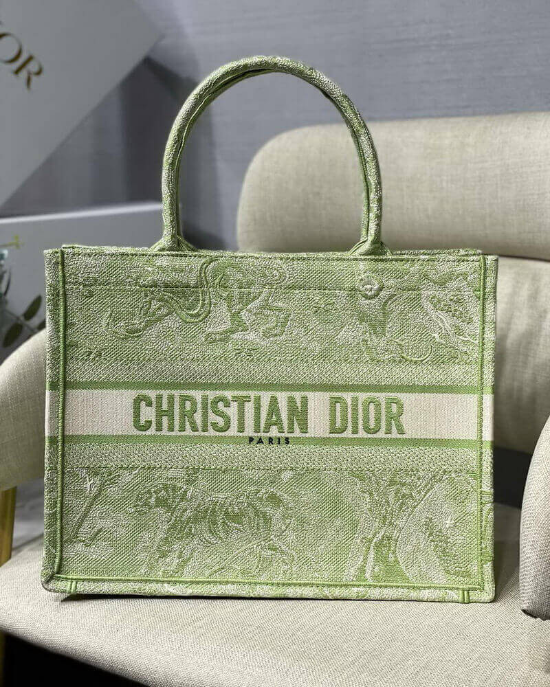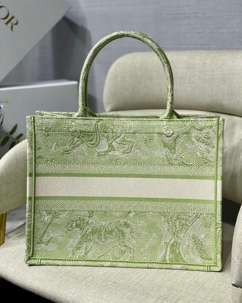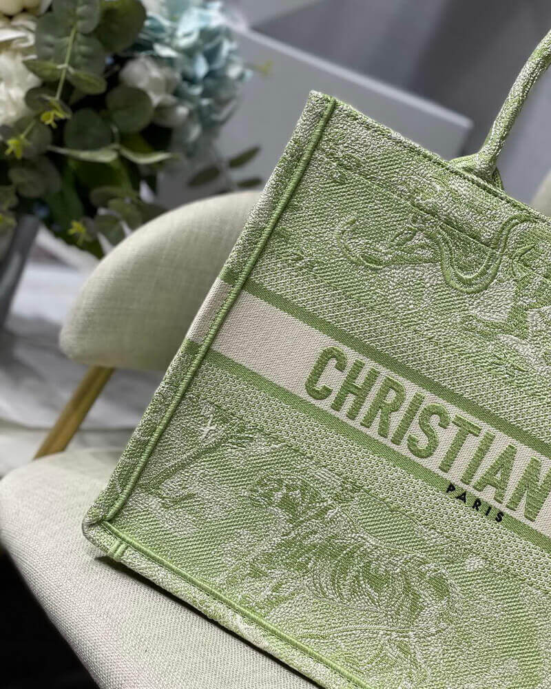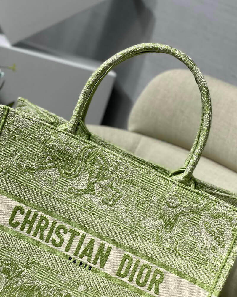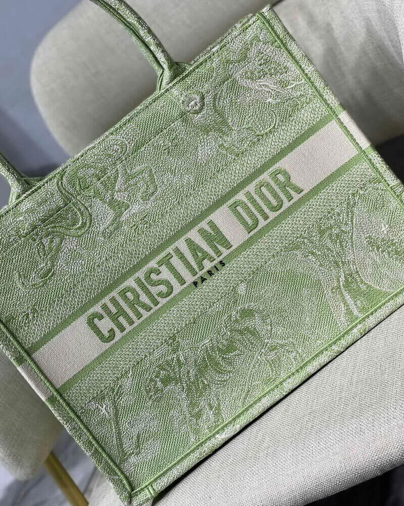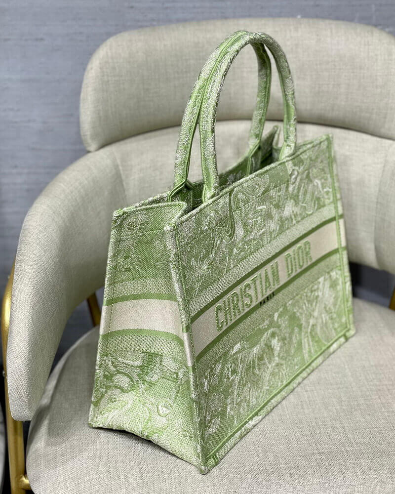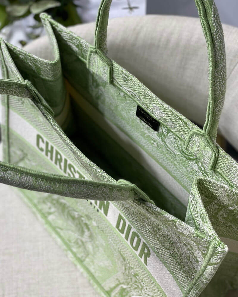 Dior Small Book Tote Lime Toile de Jouy Reverse Embroidery M1296