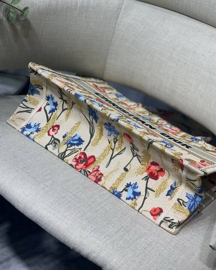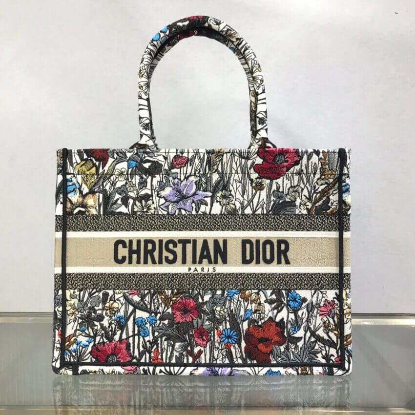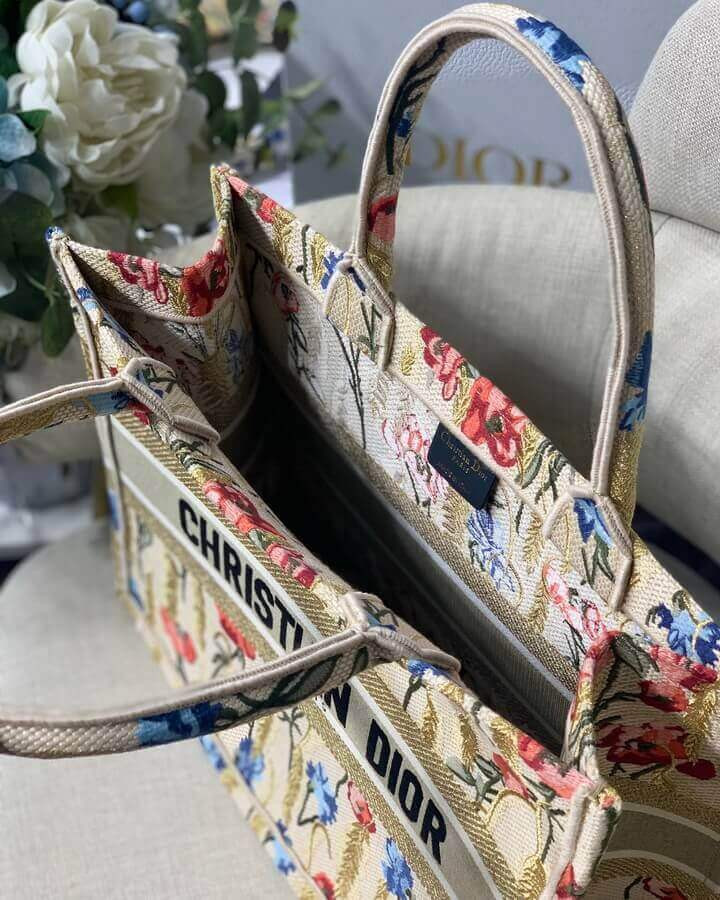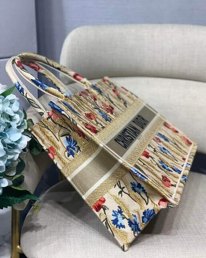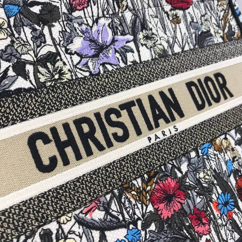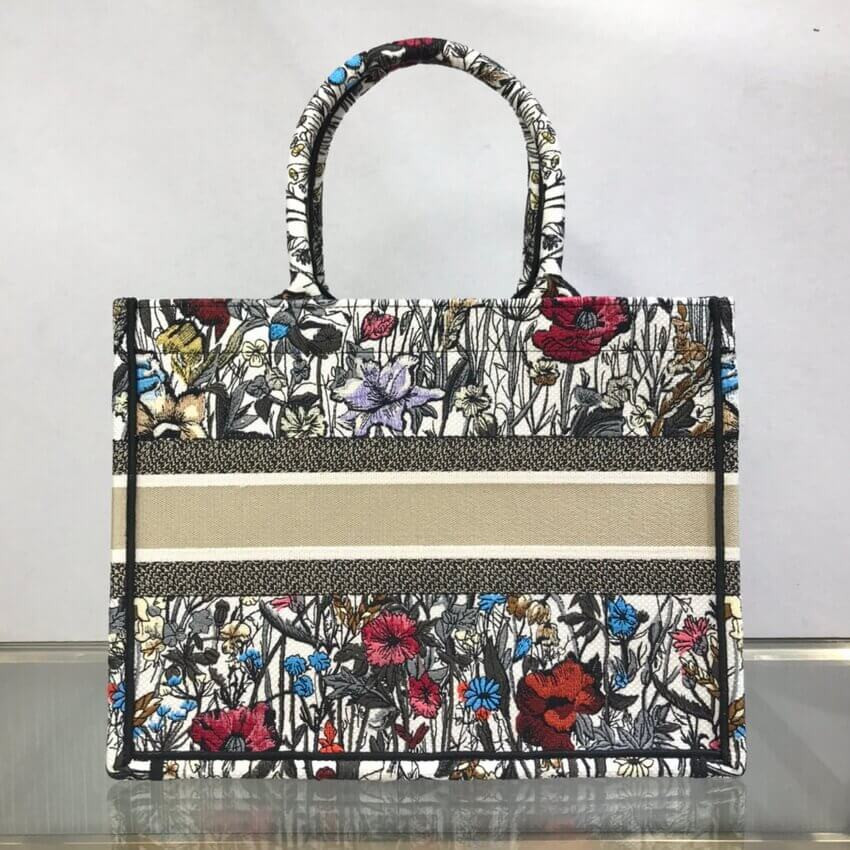 Dior Small Book Tote Multicolor Mille Fleurs Embroidery M1296