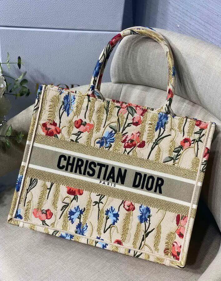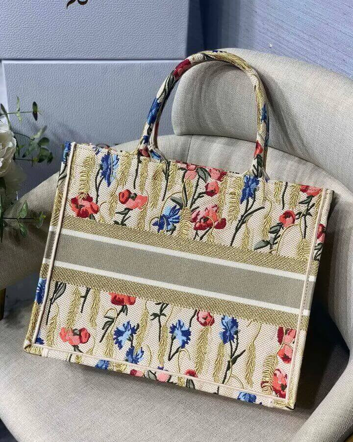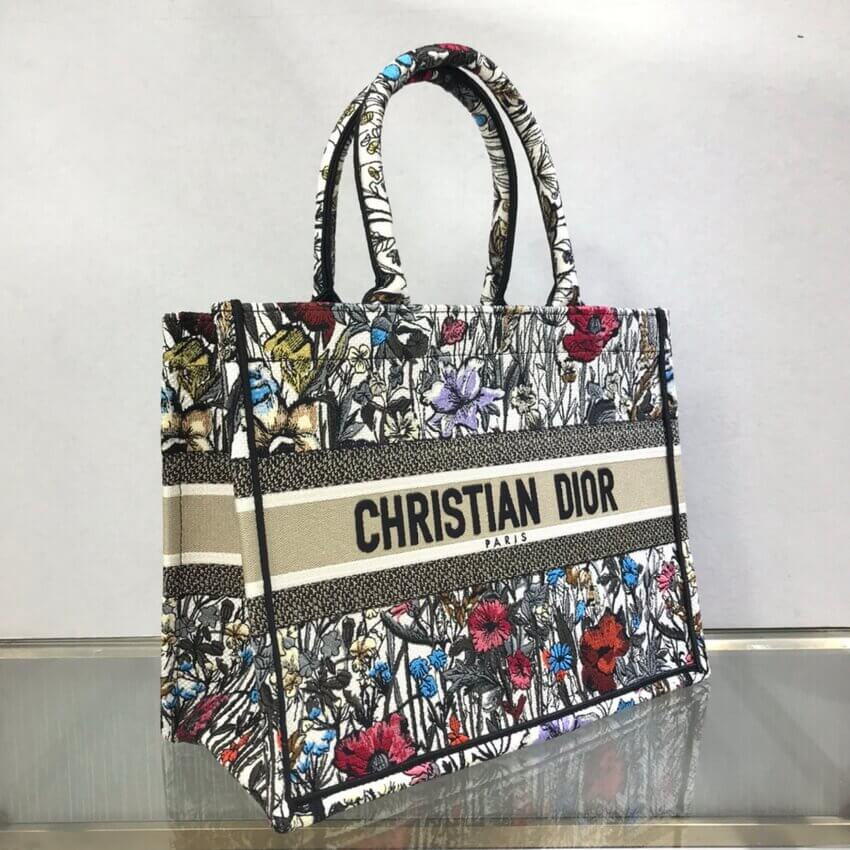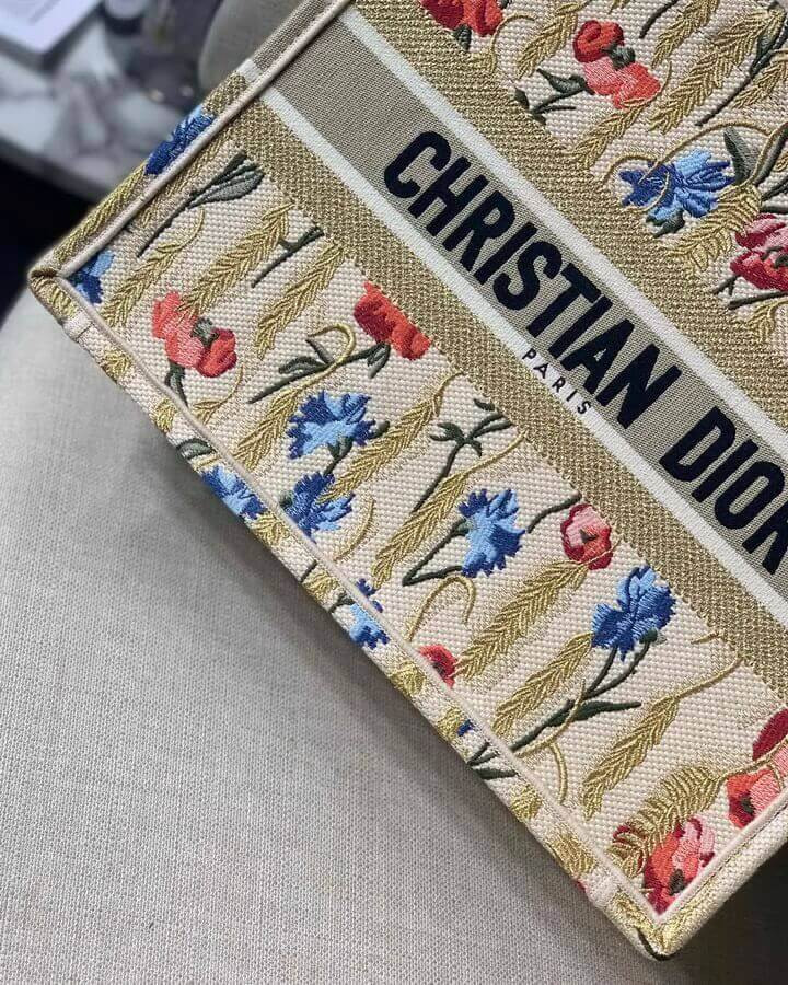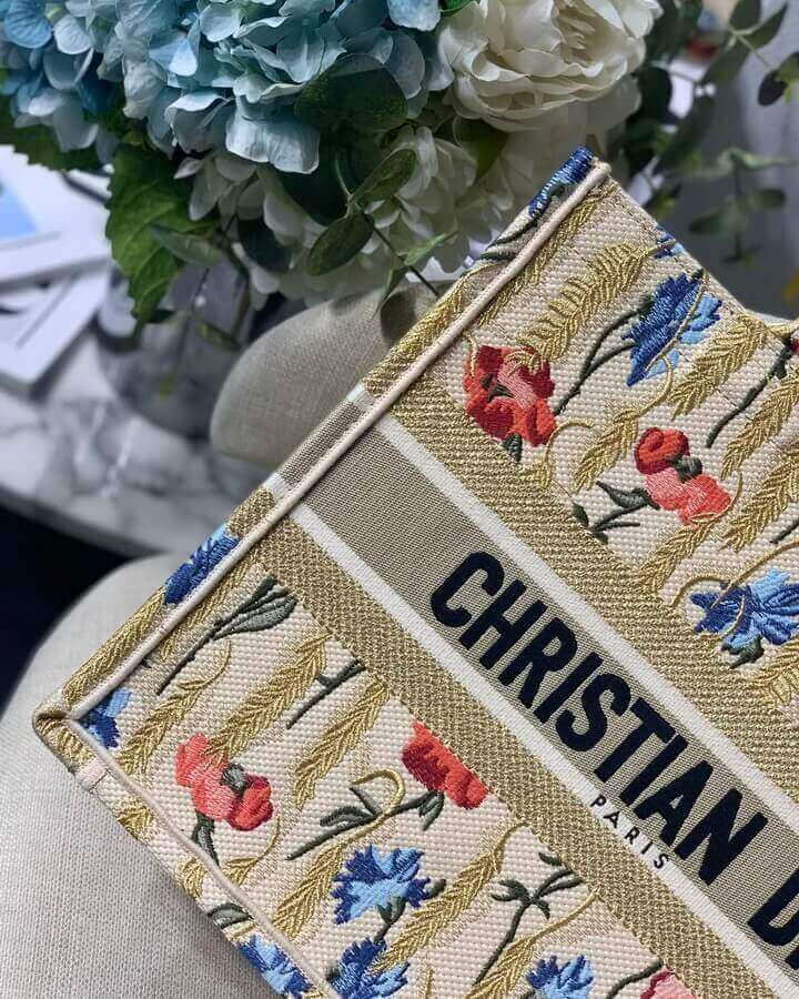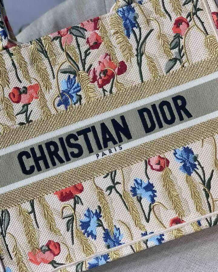 Dior Small Book Tote Multicolor Mille Fleurs Embroidery M1296