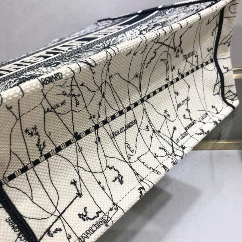 Dior Small Book Tote Beige Stripes Embroidery M1296