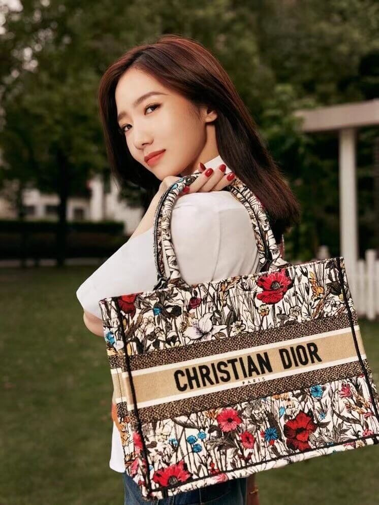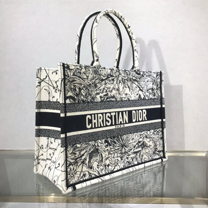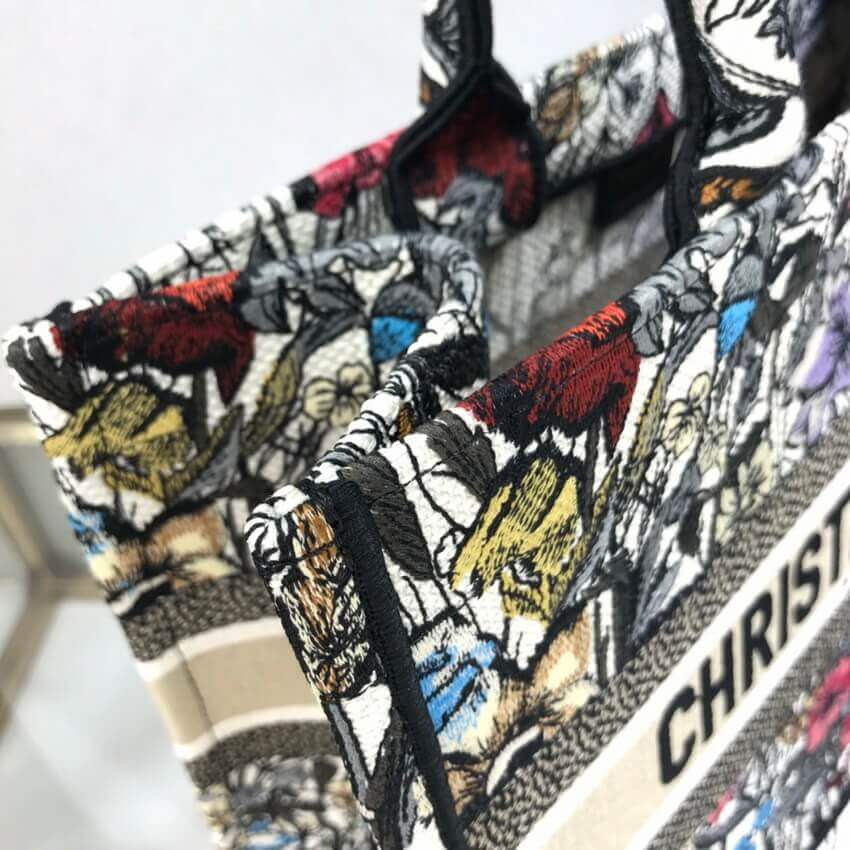 Dior Small Book Tote in Hibiscus Metallic Thread Embroidery M1296