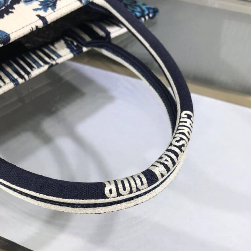 Dior Small Book Tote Blue Toile de Jouy Palms Embroidery M1296