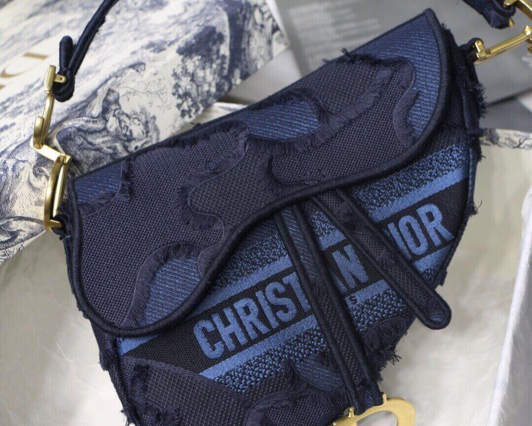 Dior Saddle Bag Blue Camouflage Embroidery M0446
