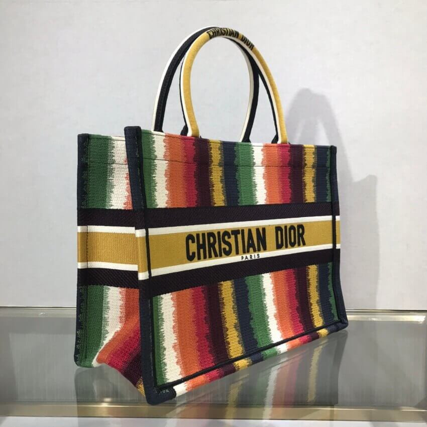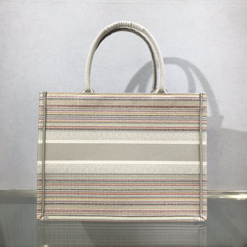 Dior Small Book Tote Multicolor Stripes Embroidery M1296