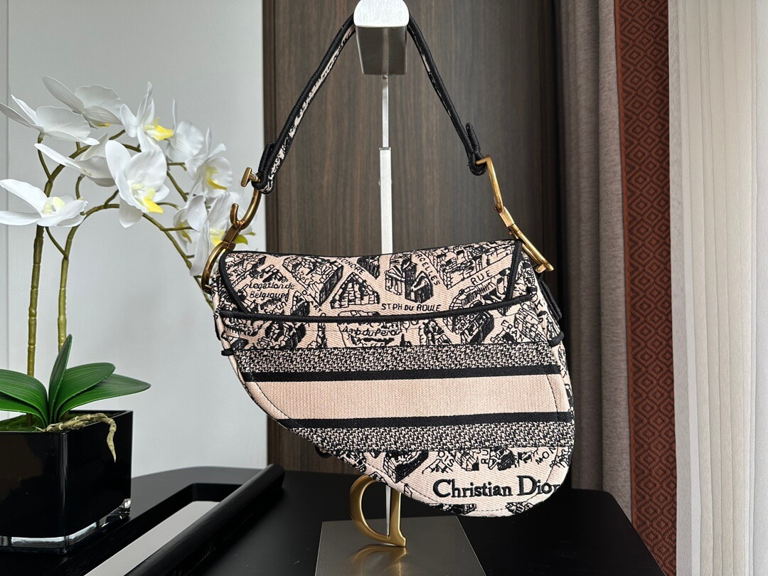 Dior Saddle Bag Beige and Black Plan de Paris Embroidery M0446