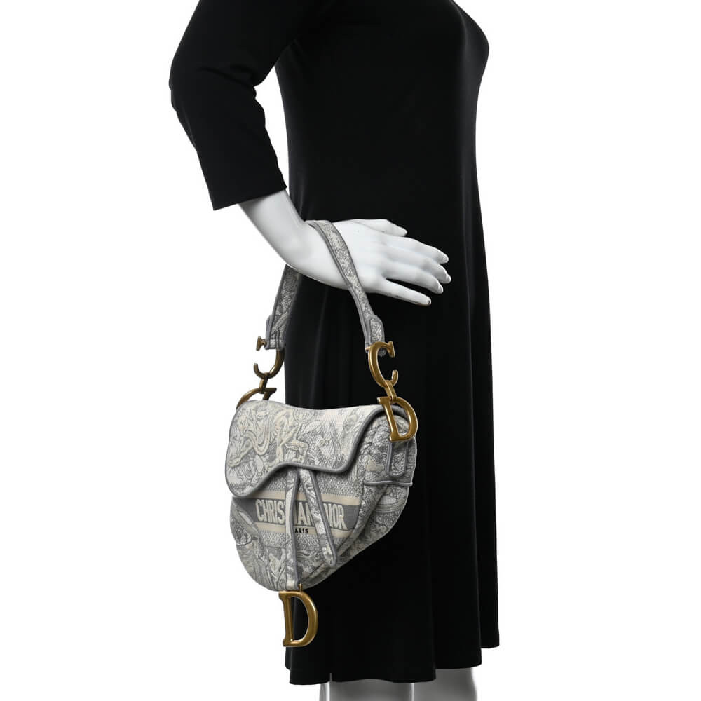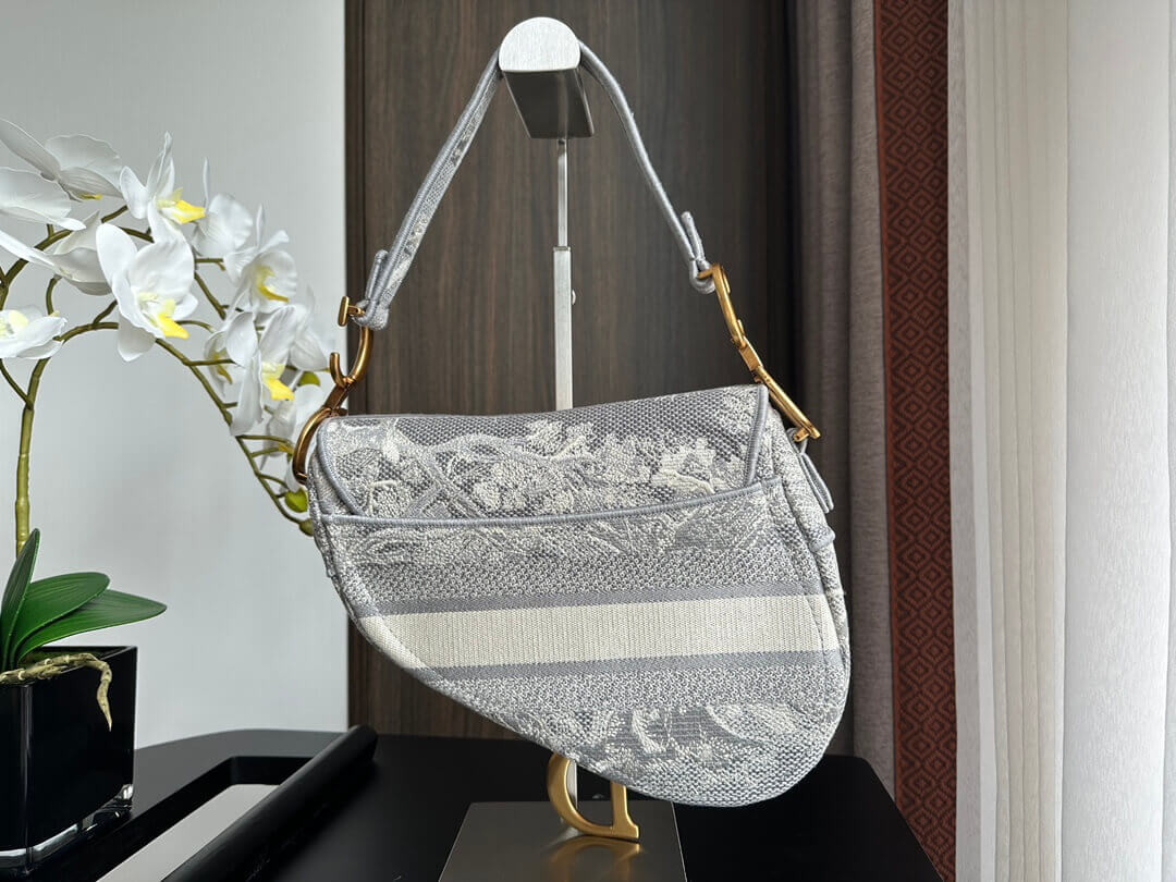 Dior Saddle Bag Grey Toile de Jouy Embroidery M0446