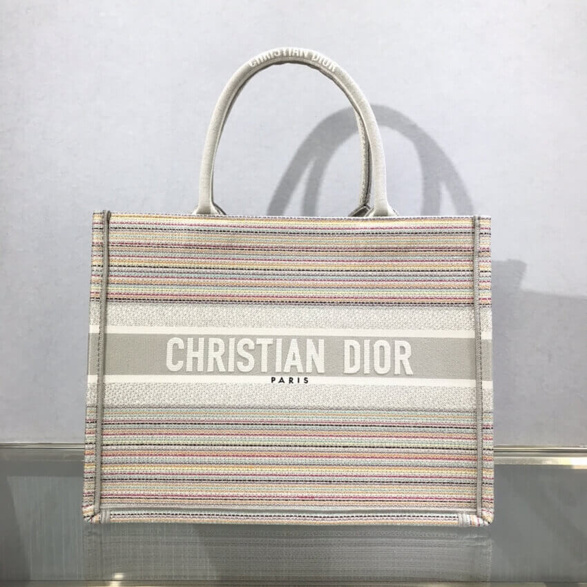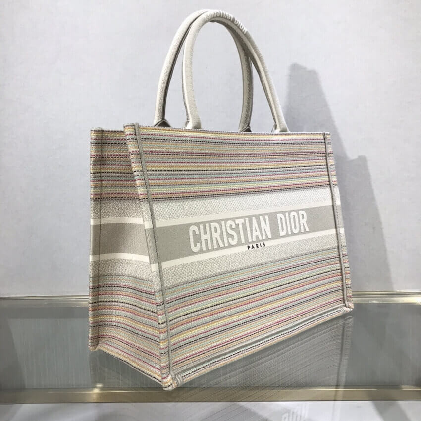 Dioraura Dior Book Tote Multicolor Stripe Embroidery M1286